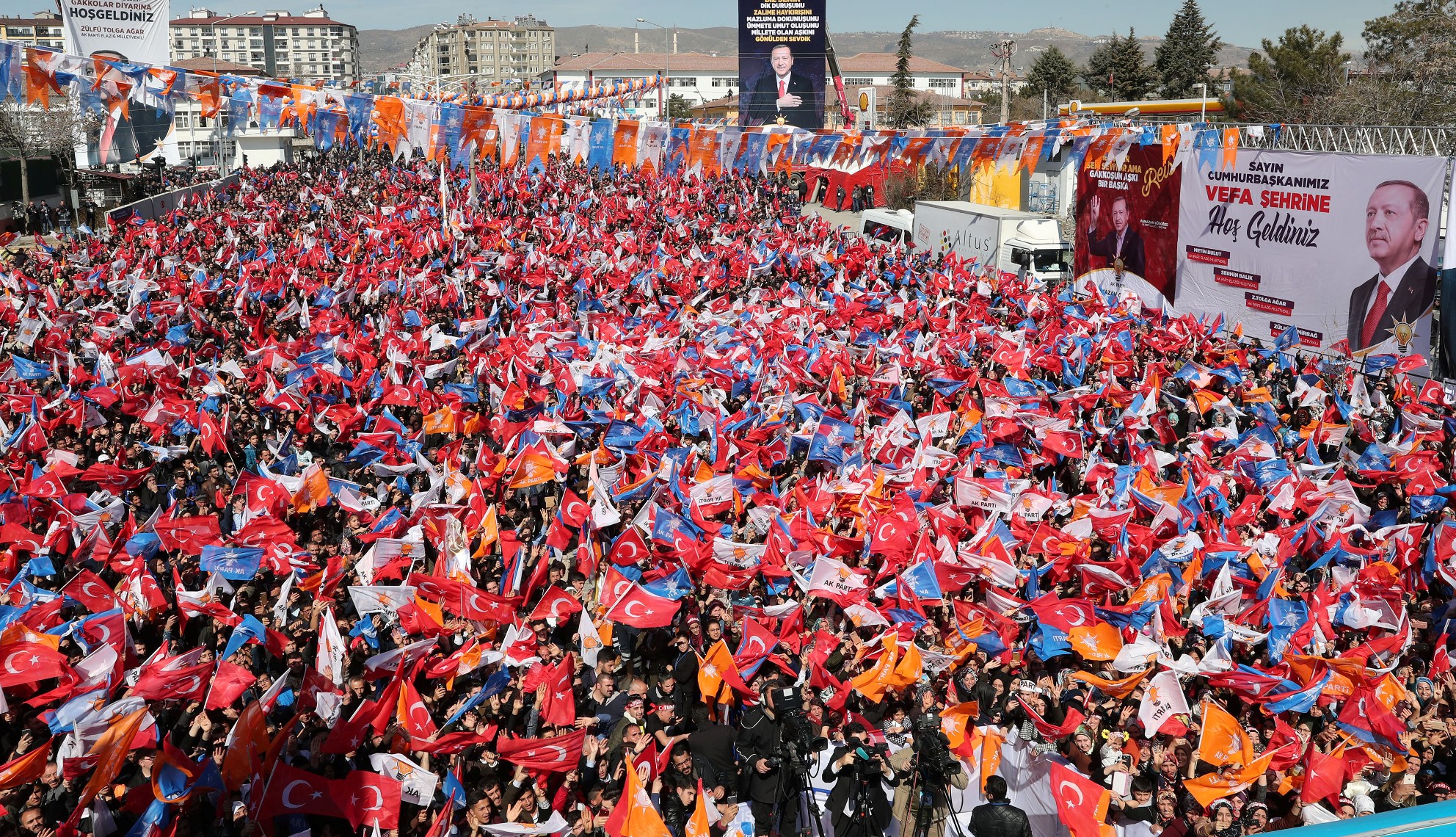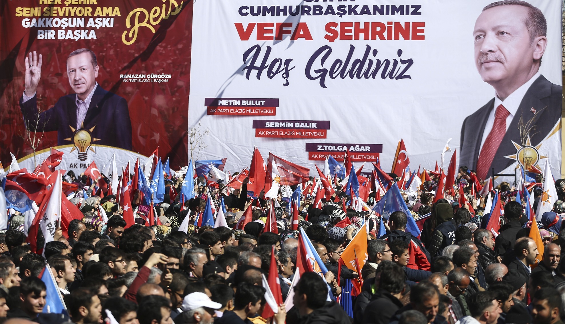 Vatandaşlara, "Elazığ, 31 Mart'ta şehrine sahip çıkıyor musun? Elazığ, 31 Mart'ta ülkene sahip çıkıyor musun? Elazığ, 31 Mart'ta sandığa, demokrasiye sahip çıkıyor musun? Elazığ, 31 Mart'ta mührü gönül belediyeciliğine vuruyor musun?" diye soran ve "evet" yanıt alan Erdoğan, "Rabbim gakkoşlardan razı olsun." dedi.