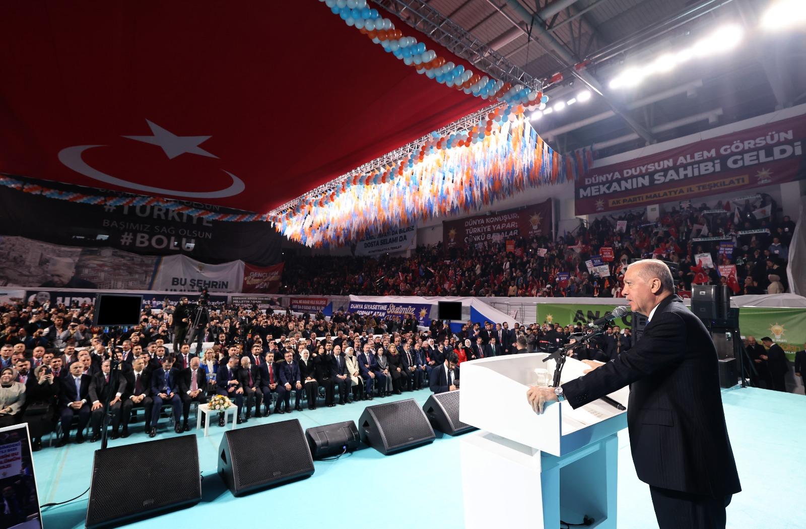 AK Parti olarak 14 Ağustos 2001'den beri aziz milletin huzurunda olduklarını, 3 Kasım 2002'den bu yana da milletin emanetini omuzlarında taşıdıklarını söyleyen Cumhurbaşkanı Erdoğan, "Bugüne kadar hep 'eser ve hizmet siyaseti' dedik. Malatya'ya gelirken her zaman eserlerimizle, yatırımlarımızla geldik. Laf değil, tahrik ve nifak değil iş ürettik, hizmet ürettik, eser ürettik. Bununla birlikte gönüller yapmaya, gönüller kazanmaya gayret ettik." ifadesini kullandı.
