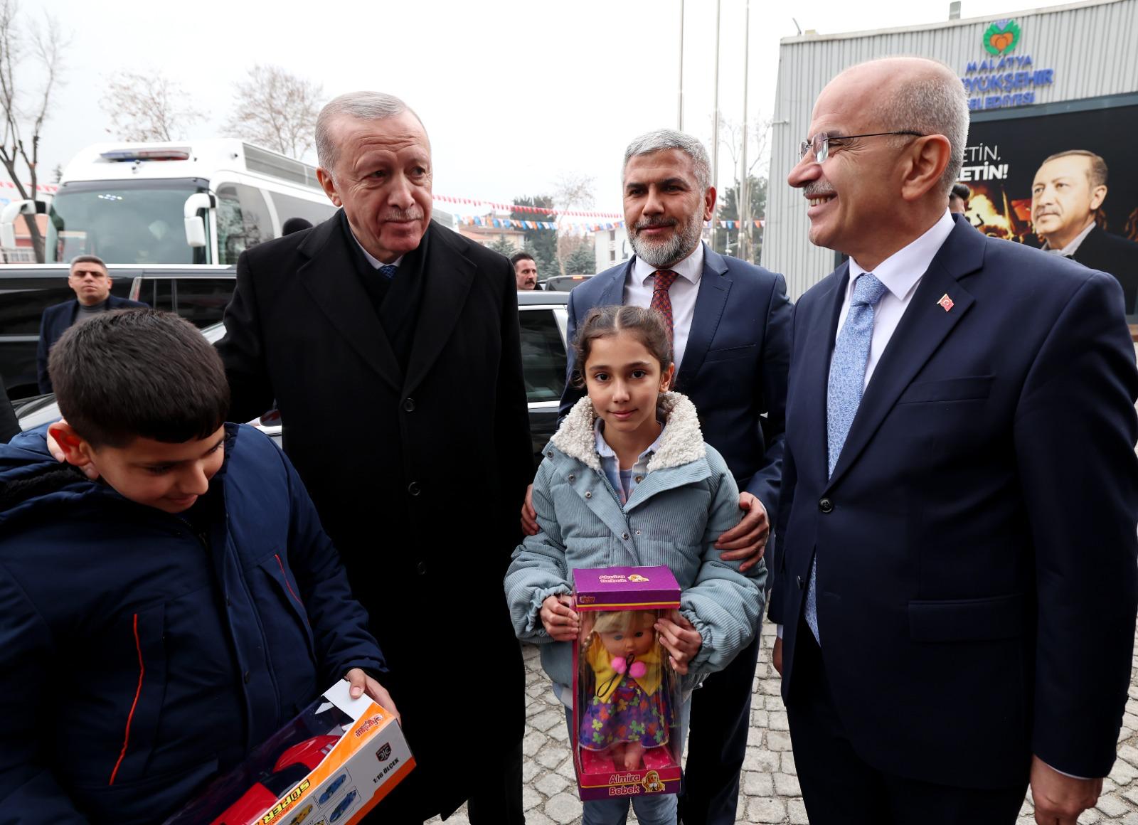 Cumhurbaşkanı Erdoğan, hem deprem konutlarının hem de çevre yolunun hizmete giren kısmının Malatya halkına hayırlı uğurlu olmasını temenni etti.