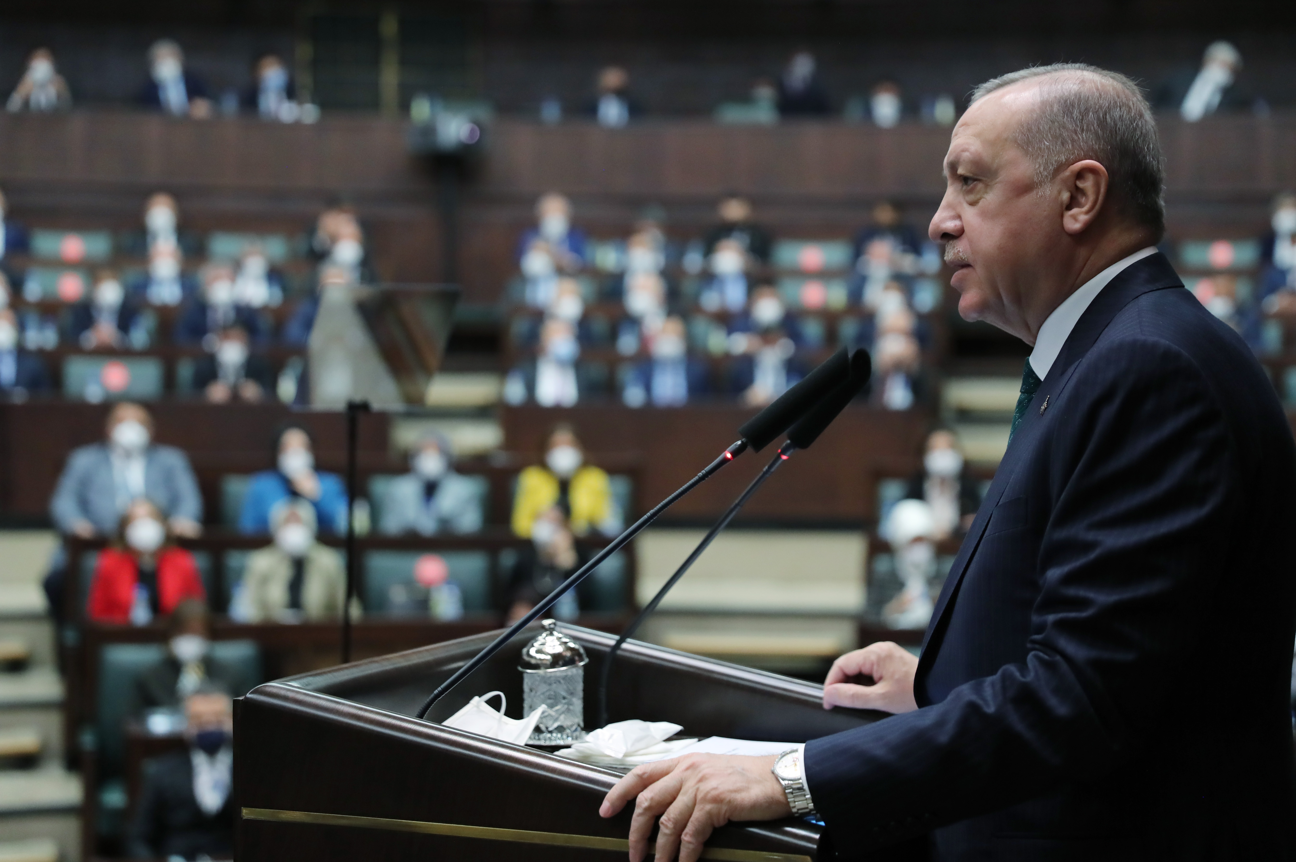 "Suriye'den Libya'ya, Doğu Akdeniz'den Ege'ye, Kıbrıs'tan Karabağ'a kadar her kriz alanında kalıcı çözüm bulunması için hem sahada, hem de masada aktif şekilde çalışıyoruz. Komşumuz Suriye'nin, toprak bütünlüğü ve milli birliği temelinde bir barış, güven, istikrar iklimine kavuşması için her türlü gayreti göstermeyi sürdürüyoruz. Libya ile imzaladığımız güvenlik ve askeri iş birliği ile deniz yetki alanları mutabakatlarıyla, her iki ülkenin Akdeniz'deki doğal kaynaklar üzerinde var olan haklarını garanti altına aldık. Azerbaycan topraklarının bir kısmı ile Dağlık Karabağ'da 30 yıldır süren işgali sona erdirmek için mücadele eden kardeşlerimizin yanında yer alarak, kazandıkları zafere destek olduk. Avrupa Birliği, Amerika Birleşik Devletleri, Rusya, İran, Orta Asya ülkeleri, Arap dünyası gibi yakın ilişki içinde olduğumuz yerler başta olmak üzere, herkesle hak ve adalet zemininde ilişkilerimizi geliştirme kararlılığı içindeyiz."