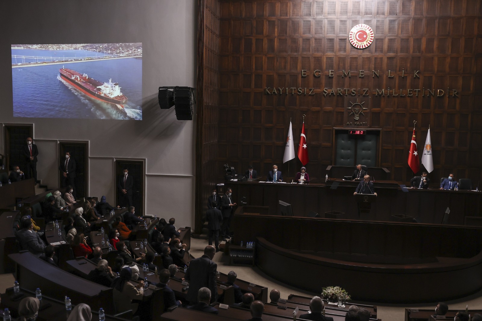 Cumhurbaşkanı Erdoğan, konuşmasının bu bölümünde, Kanal İstanbul Projesi'ni ve önemini anlatan bir videoyu izletti.
