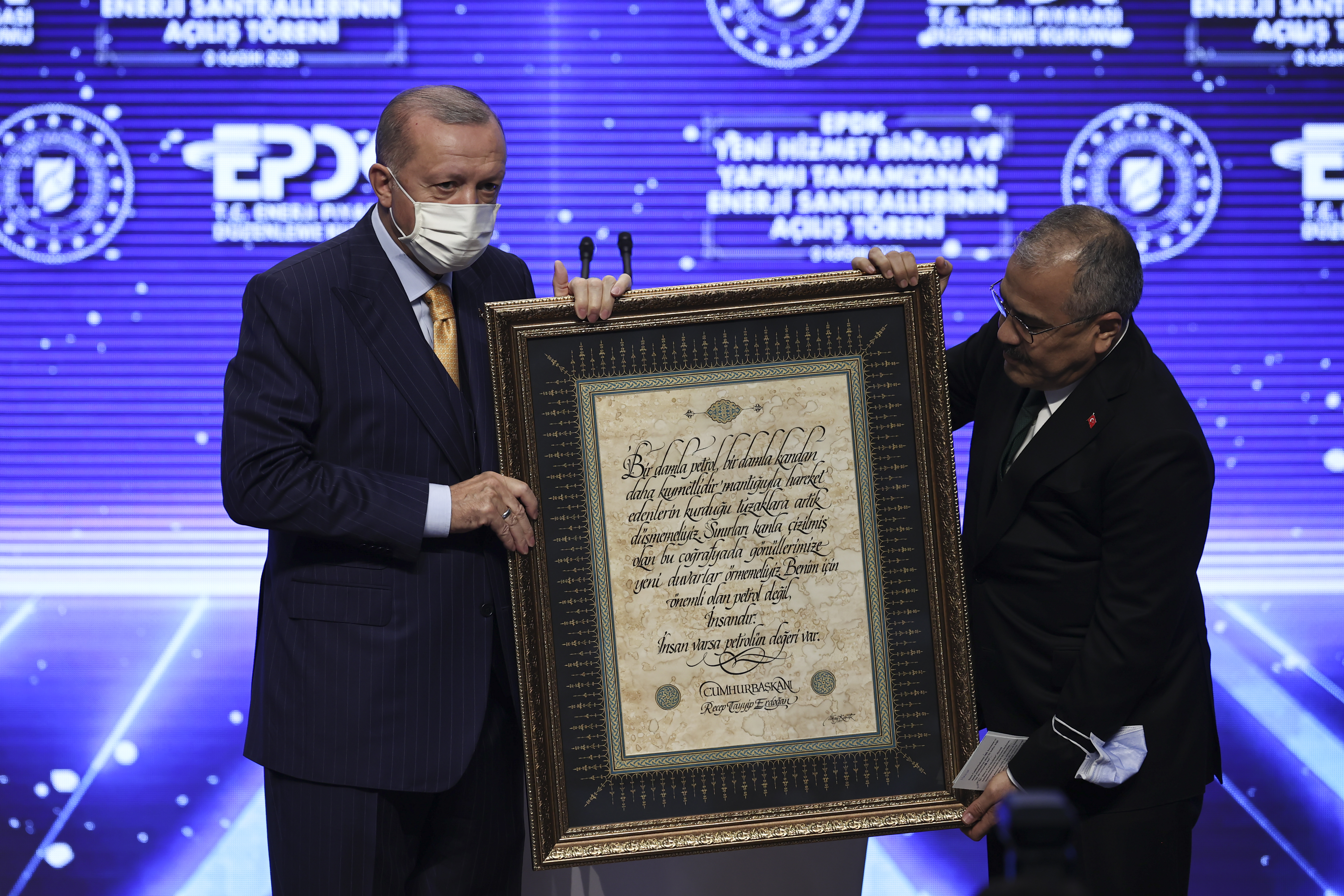 Cumhurbaşkanı Erdoğan, Enerji Piyasası Düzenleme Kurumu’nun yeni hizmet binası ile enerji santrallerinin hayırlı olmasını dileyerek bu eserlerin Türkiye'ye kazandırılmasında emeği geçenleri tebrik etti.