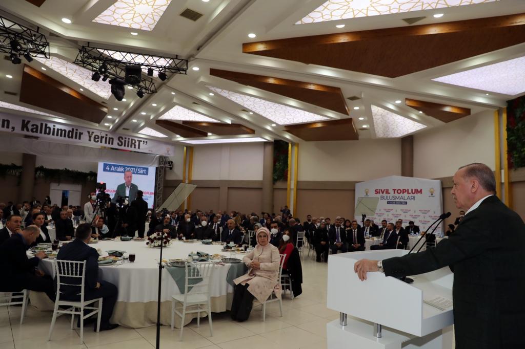 Cumhurbaşkanı Erdoğan, "Türkiye'nin de bölgemizin de geleceğinde teröre ve Kandil uzantılı siyasete yer yoktur. Siirtli kardeşlerimizin de desteğiyle yaklaşık 40 yıldır insanımızın kanını, ülkemizin de kaynaklarını adeta bir sülük gibi emen bu beladan ebediyen kurtulacağımıza inanıyorum. Her sosyal meselede olduğu gibi milli birlik ve dirliğimizin güçlendirilmesi çabalarında da sivil toplumun yeri doldurulamaz." dedi.
