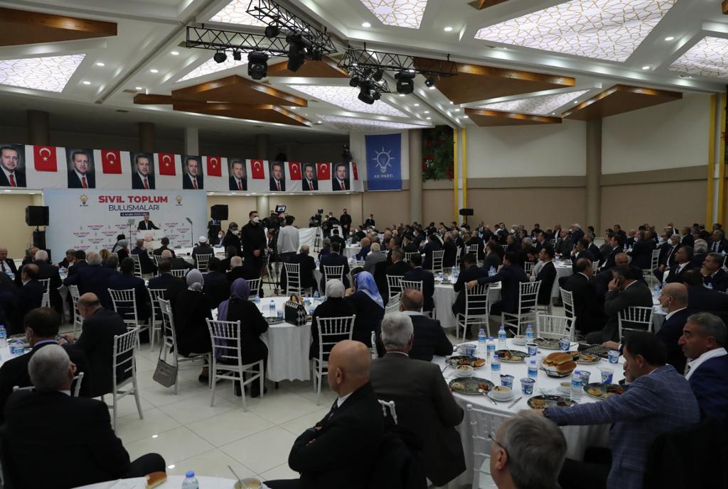 "Teşkilatlarımızla, milletvekillerimizle, bakanlarımızla kapısı çalınmadık ev, hali hatırı sorulmadık insanımızı bırakmamak için ter döktük. Bu hassasiyetimizi son dönemde gittiğimiz şehirlerimizde de aynı şekilde devam ettiriyoruz. Toplu açılış törenleri yanında ya parti teşkilatlarımızla ya da o şehrin sivil toplum kuruluşlarıyla bir araya gelmeye ihtimam gösteriyoruz. Tıpkı bugün burada olduğu gibi. İIim, irfan, liyakat sahibi hocalarımızla, kanaat önderlerimizle, büyüklerimizle milletimizin bizatihi kendisiyle görüşmeler yapıyoruz. Engellilerden kadınlarımıza, gençlerimizden iş adamlarımıza kadar toplumumuzun her kesimiyle bağlarımızı daha da güçlendiriyoruz. Bugün burada olduğu gibi son derece samimi bir ortamda ülkemizin ve şehirlerimizin gündemindeki konuları değerlendiriyoruz."