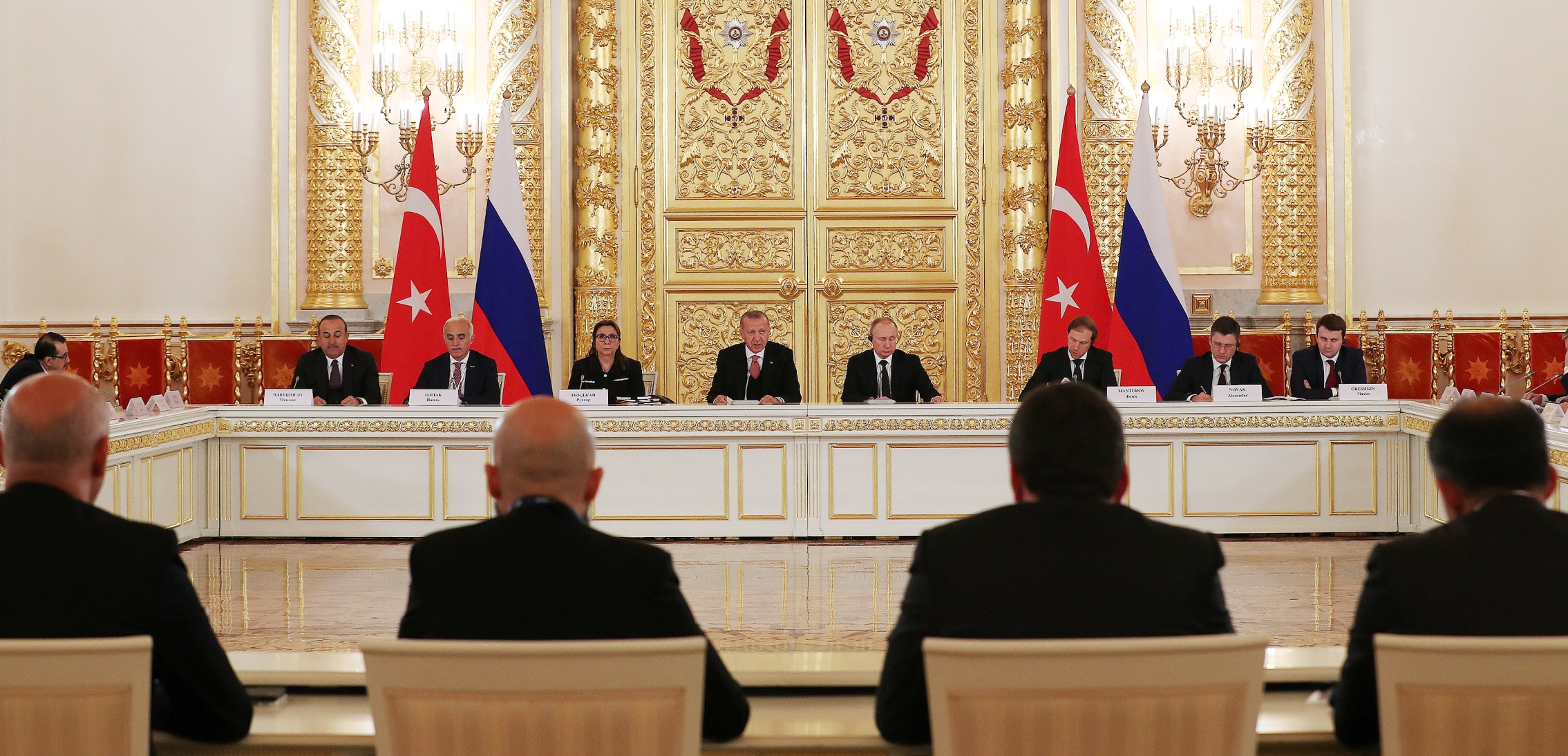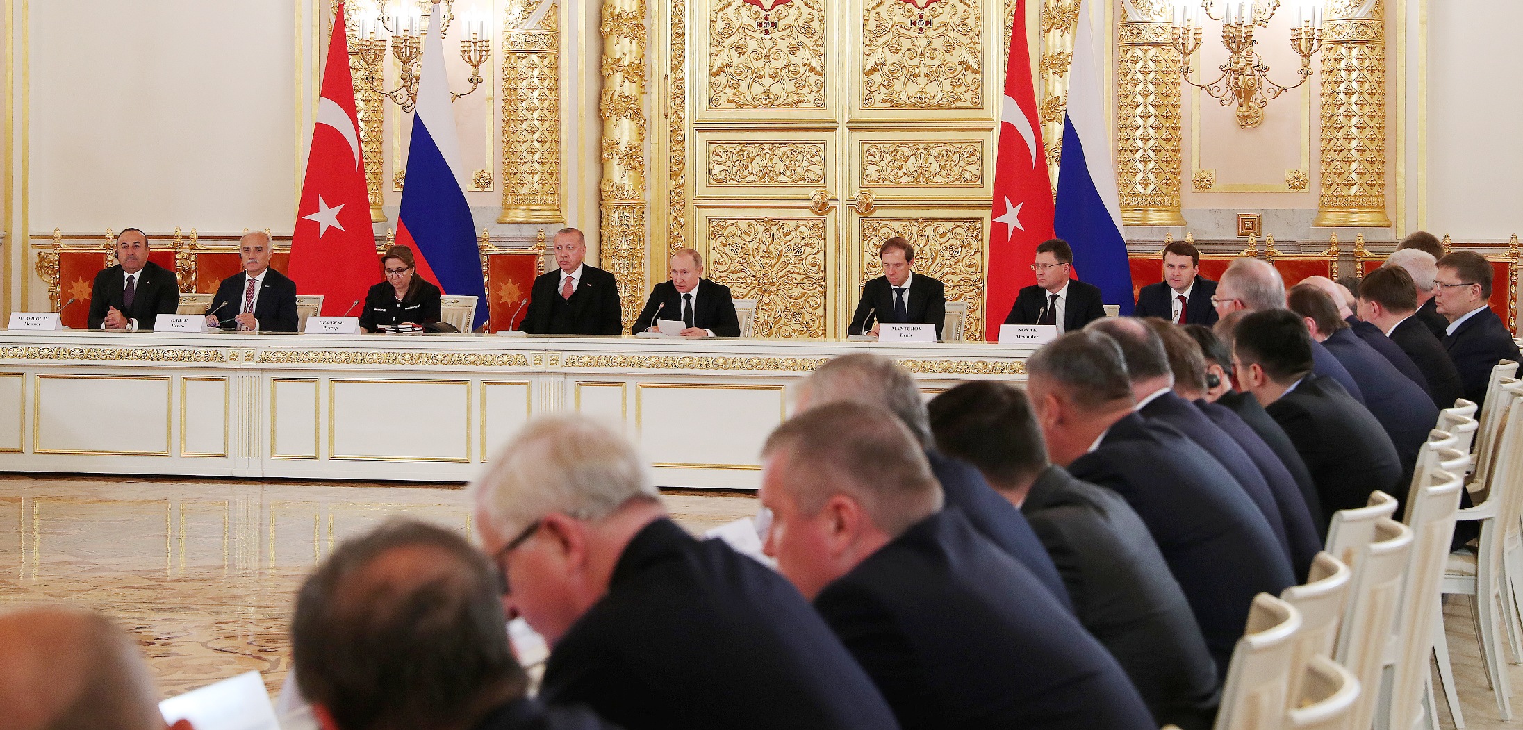 Cumhurbaşkanı Erdoğan, toplantının verimli ve bereketli geçmesi temennisinde bulunarak, "Rusya ile yoğunlaşan ilişkilerimizin, ekonomimize ve iş dünyamıza da olumlu yansımaları oldu. 1990'lardan itibaren ekonomik ve ticari ilişkiler Türk-Rus iş birliğinin adeta lokomotifi oldu. Bugün de sayın Putin ile yaptığımız görüşmelerde gerek siyasi gerek askeri gerek ticari gerek ekonomik gerek kültürel alanlarda etraflıca heyetler arası görüşmeleri ele aldık." diye konuştu.