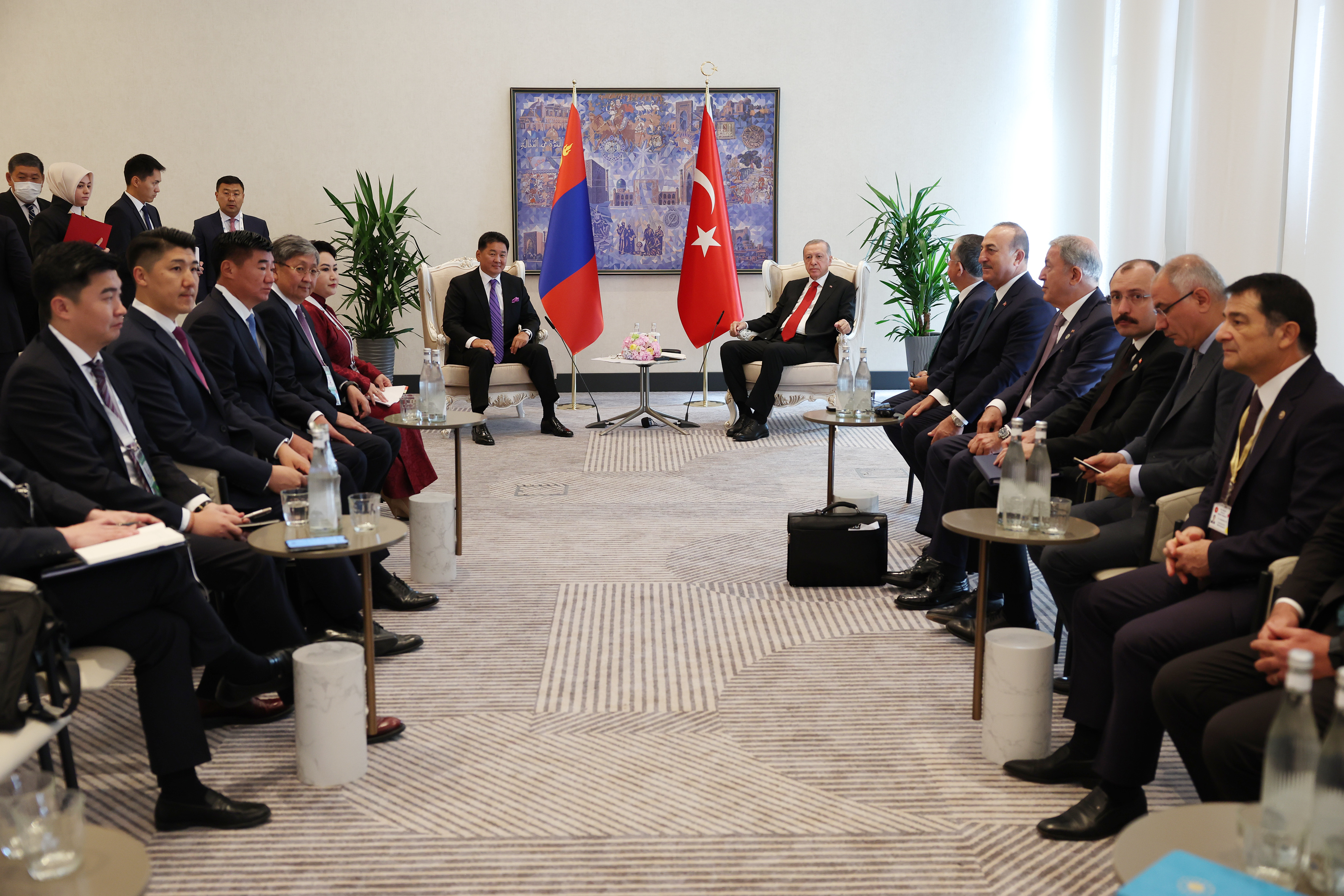Cumhurbaşkanı Recep Tayyip Erdoğan, Moğolistan Cumhurbaşkanı Ukhnaagiin Khurelsukh ile görüştü.