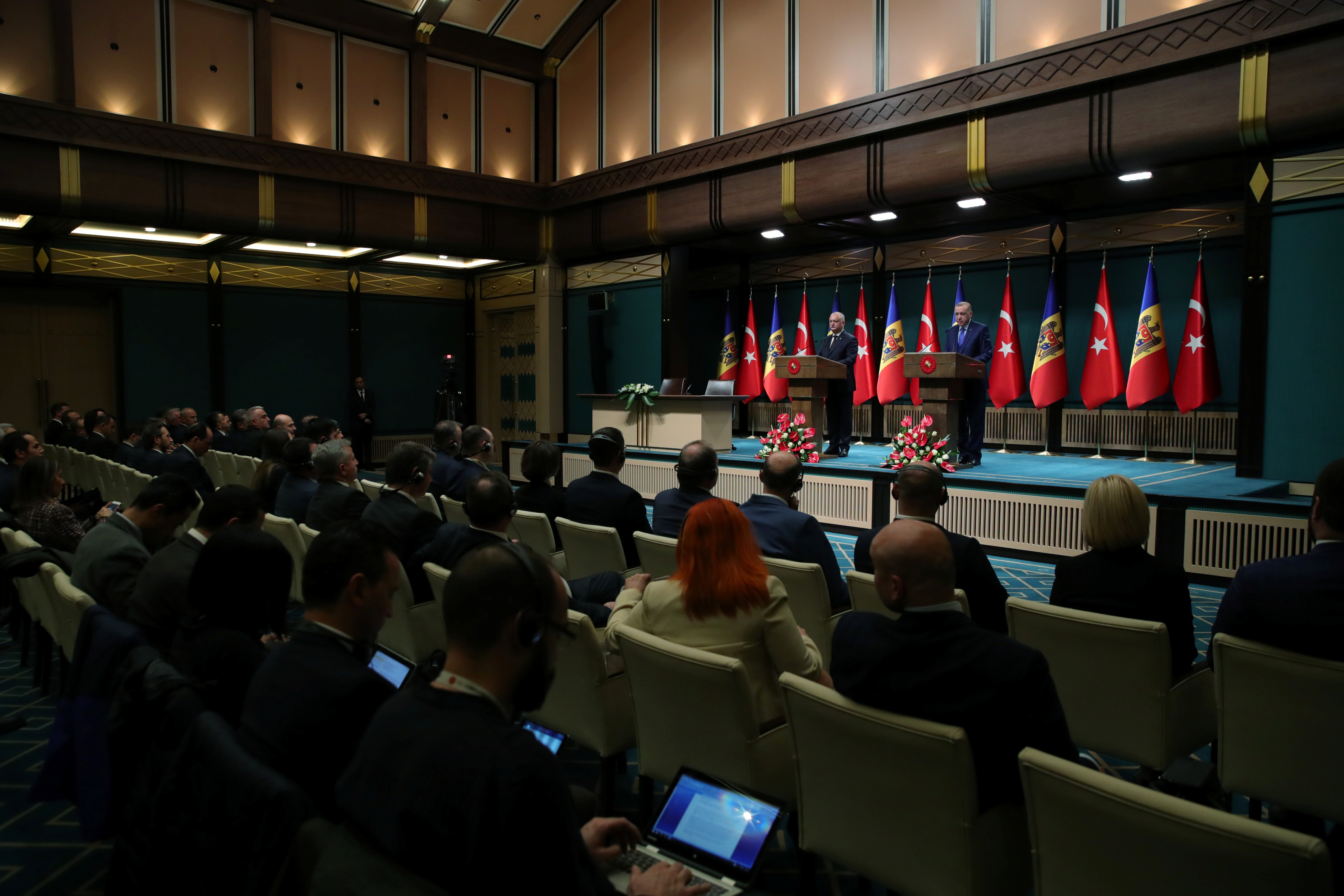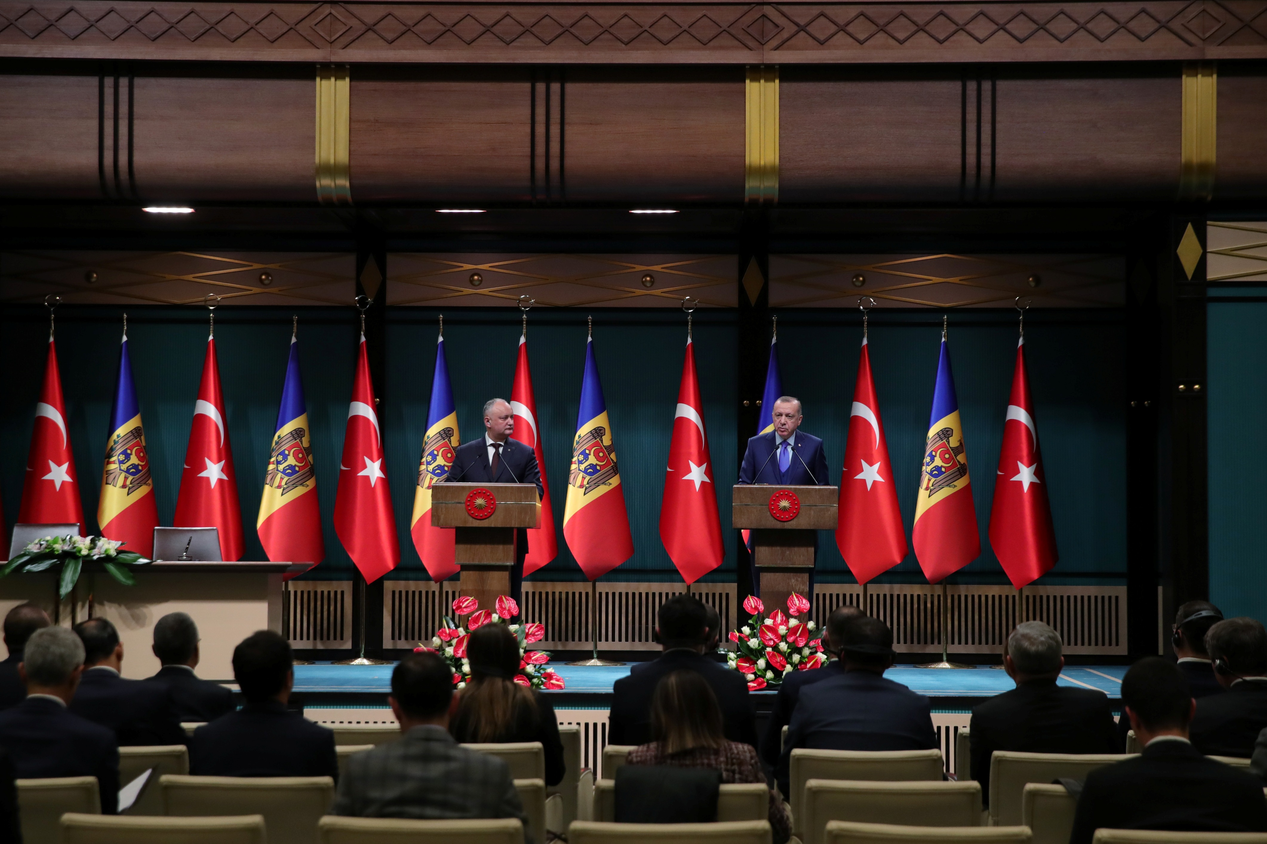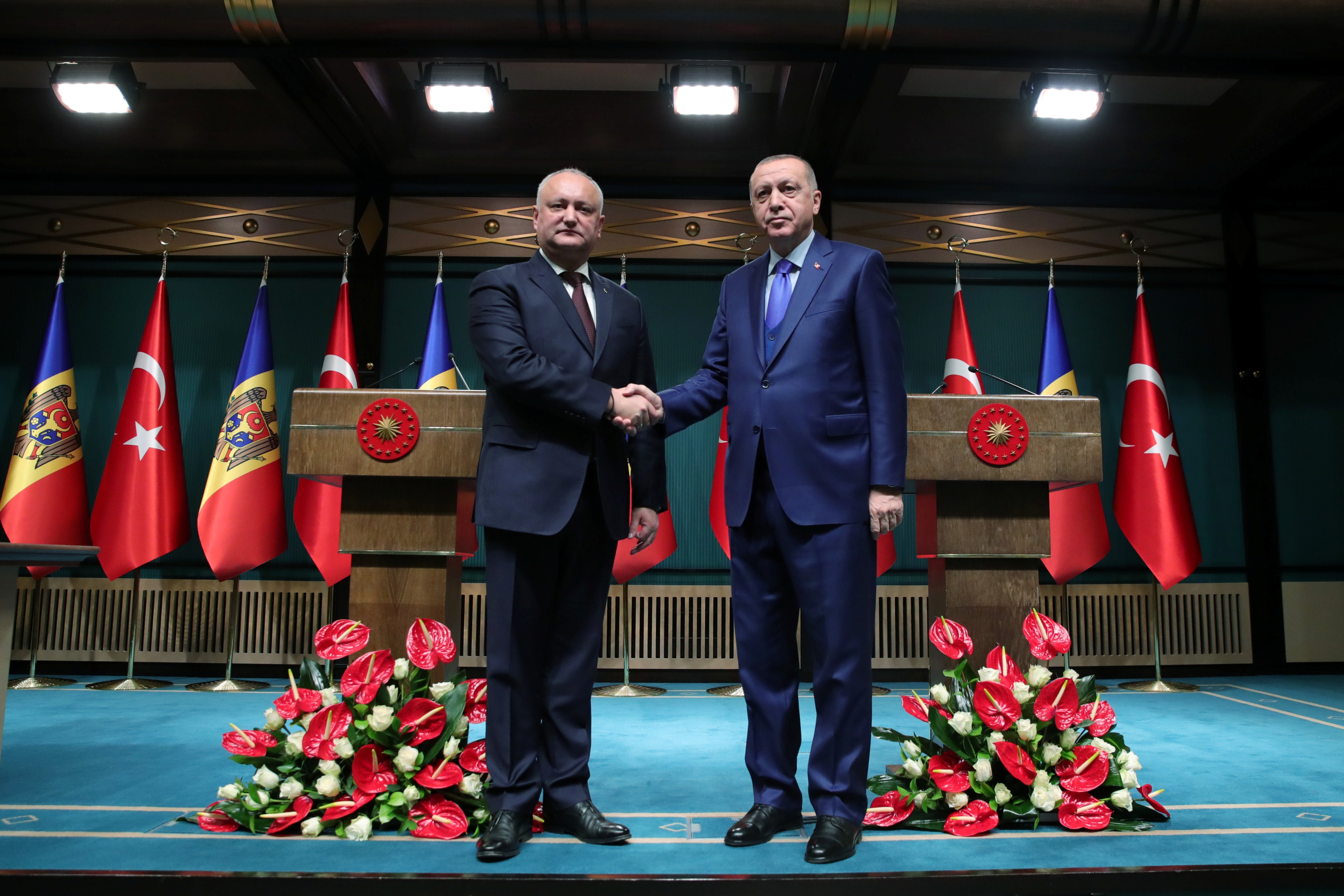 Cumhurbaşkanı Dodon ve beraberindeki Moldova Başbakanı İon Kiku ile heyetini Ankara'da misafir etmekten duyduğu memnuniyeti ifade eden Erdoğan, "Sayın Başbakan Kiku da değerli dostum Dodon'a bugün eşlik ediyor. Bu ziyaret Moldova Cumhurbaşkanı ve Başbakanının yurt dışına beraberce yaptıkları ilk resmi ziyaret olması hasebiyle tarihi bir öneme sahiptir. Bunu kıymetli dostlarımızın Türkiye-Moldova ilişkilerine verdikleri önemin bir işareti olarak görüyorum." diye konuştu.