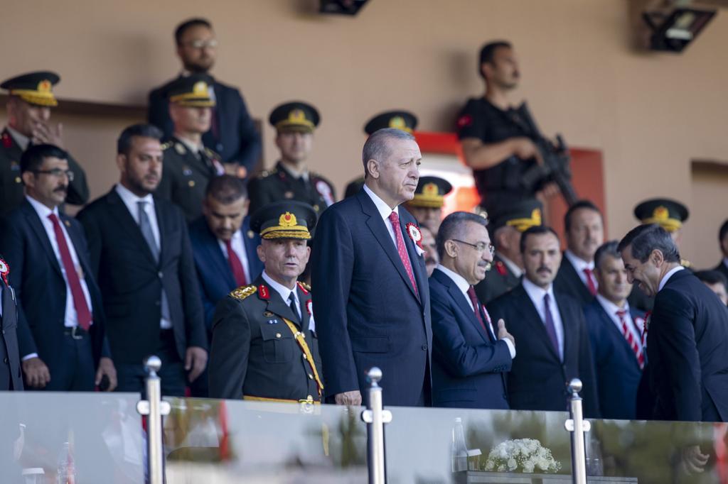 Türk Silahlı Kuvvetlerinin yeni teğmenlerle daha da güçleneceğini dile getiren Cumhurbaşkanı Erdoğan, "Dünyadaki güç dengelerinin yeni gerilimleri ve muhtemel çatışmaları artırdığı bir dönemde her sınıftan ve rütbeden askeri personelin, ordumuz için kritik öneme sahip olduğu muhakkaktır. Milletimizin göz bebeği ordumuz, bölgesel tehditler ve terör örgütleri yanında bünyesinde sızmaya çalışan sinsi yapıların yol açtığı tahribatlarla da mücadele etmek mecburiyetinde kalmıştır." diye konuştu.