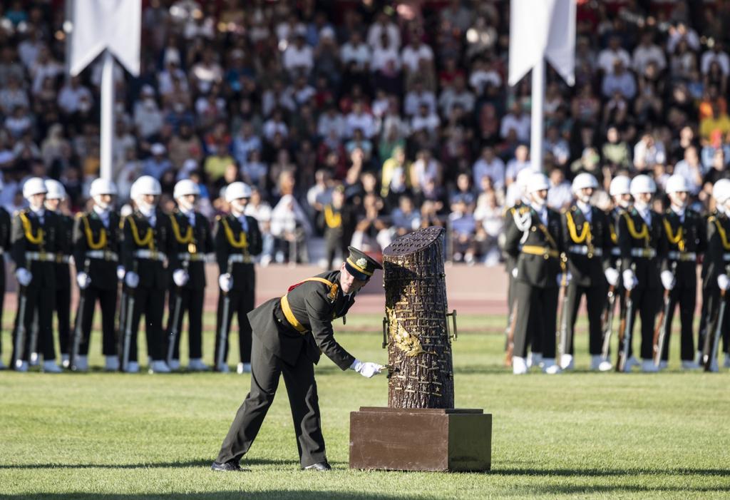 Dereceyle mezun olan misafir teğmenlerin diplomalarını almalarının ardından Kara Harp Okulları sancak devir teslim töreni gerçekleştirildi. Kara Harp Okulu Komutanı Yaralı tarafından sancaktar ve sancak muhafızlarına kılıç ve diploma verilmesinin ardından tören resmî geçitle sona erdi.