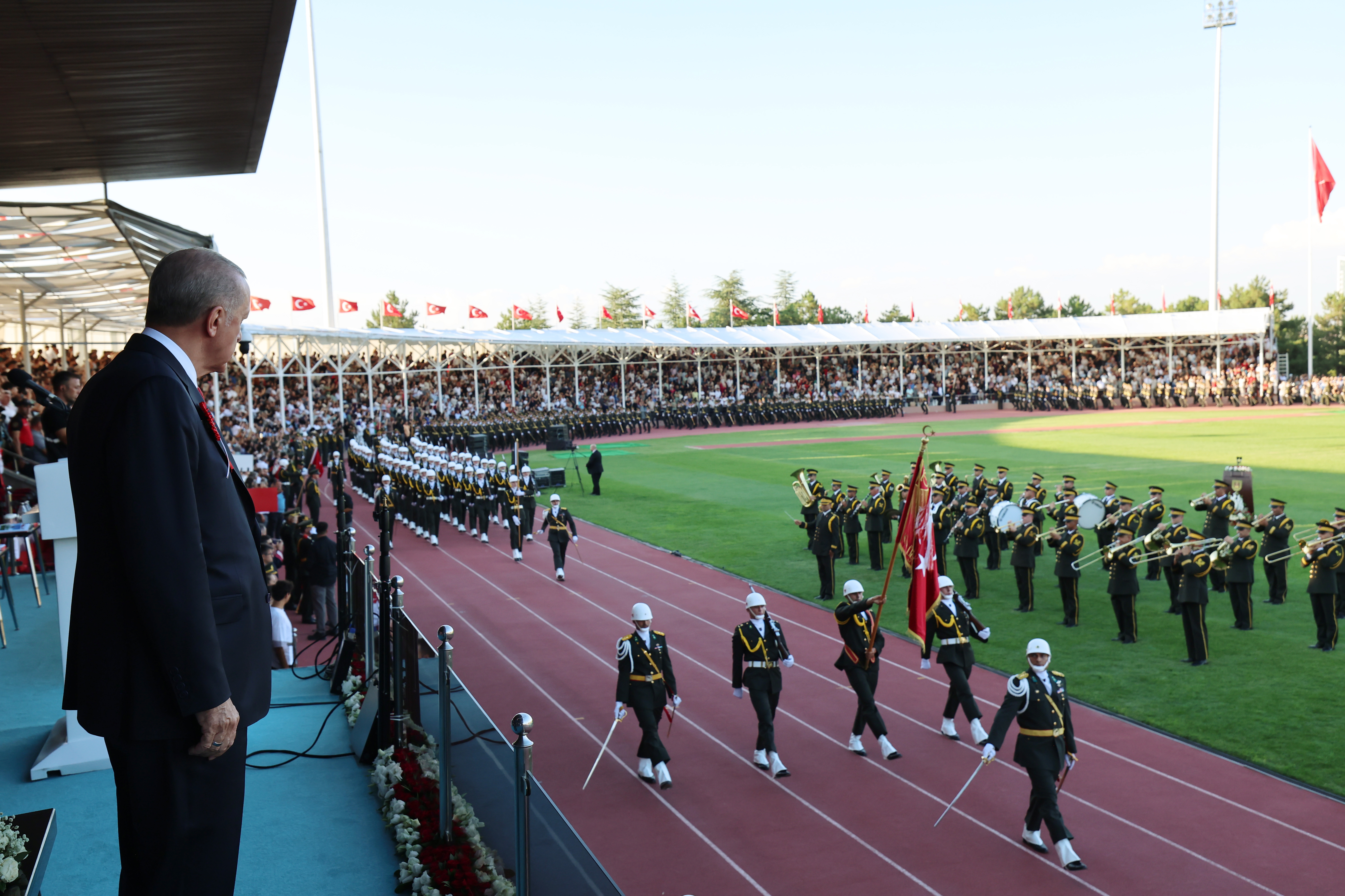 Cumhurbaşkanı Recep Tayyip Erdoğan, Millî Savunma Üniversitesi (MSÜ) Kara Harp Okulu Diploma Alma ve Sancak Devir Teslim Töreni'nde konuştu.