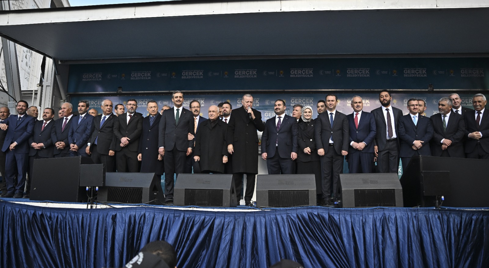 Yarım asrı bulan siyasi hayatları boyunca meseleye daima böyle baktıklarını ifade eden Cumhurbaşkanı Erdoğan, "Kazandıkça kibri büyüyenlerden değil, tevazu sahibi olanlardan olduk. Bugün de aynı yerdeyiz. Aynı samimiyetle hareket ediyoruz. Hakk'ın rızasını kazanmak, halkımızın da hayır duasını almak dışında gönlümüzün meylettiği hiçbir şey yok. Sadece 'şu gök kubbede hoş bir sada bırakalım yeter' diyoruz. Son nefesimize kadar istikametimizi bozmadan inşallah bu yolda yürümeye devam edeceğiz. Bizim duruşumuz da, amacımız da niyetimiz de bellidir. Eksiğimiz, kusurumuz olsa da niyetimiz sağlamdır." dedi.