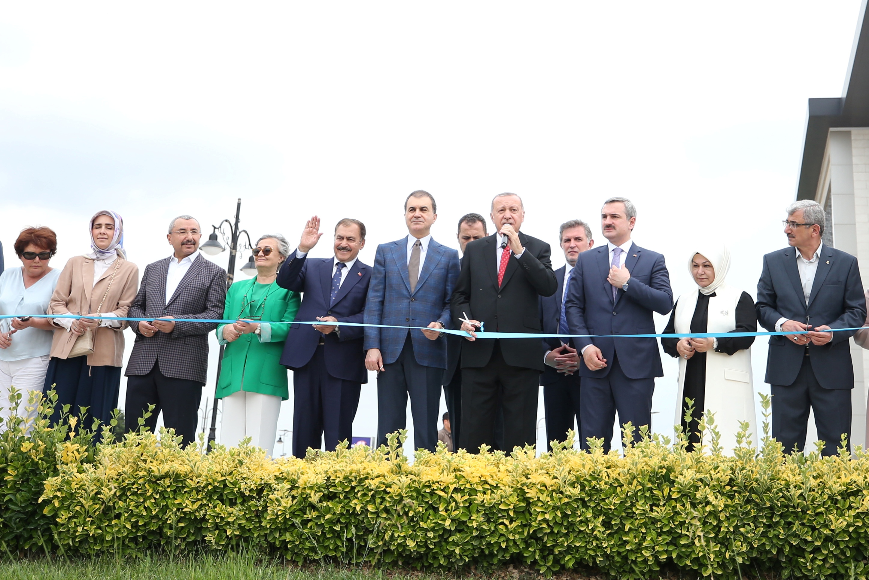 Erdoğan, kurdele keserken yaptığı konuşmada, "Yaklaşık 1,5 katrilyon liralık toplu açılışların şu anda kurdelasını kesiyoruz. Zaten hizmet vermeye başlamıştı bu tesislerimiz. Şimdi resmen bu süreç başladı. Ve bu resmi açılışın Sancaktepemiz, çevremiz, İstanbulumuz için hayırlara vesile olmasını Allah'tan temenni ediyor, kurdelayı da bu temenni ile kesiyorum." dedi.