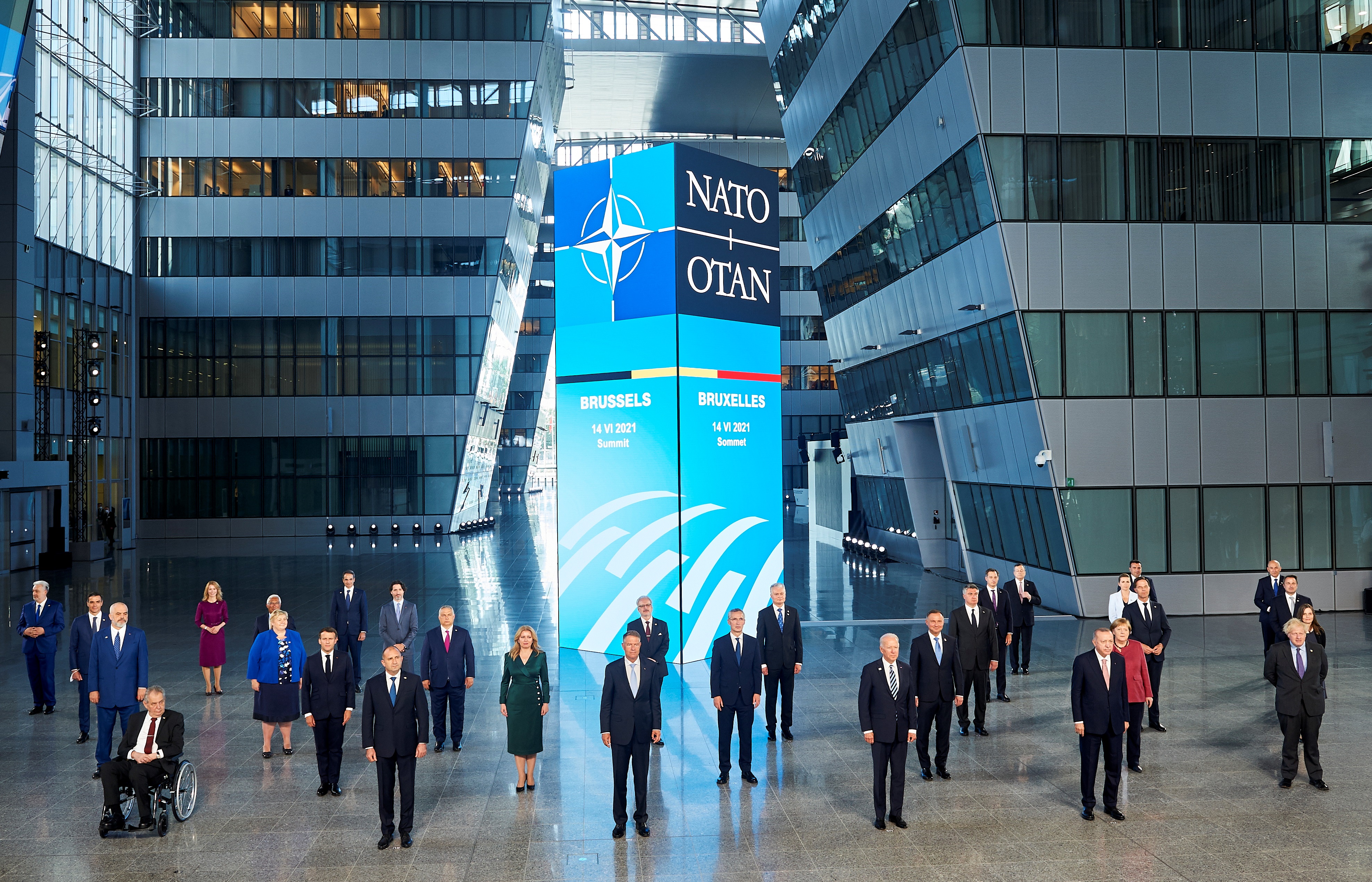 Cumhurbaşkanı Erdoğan ve diğer liderler NATO Genel Sekreteri Jens Stoltenberg tarafından karşılandı. Tüm liderlerin tek tek karşılanmasının ardından sosyal mesafe kuralına uyularak aile fotoğrafı çektirildi.