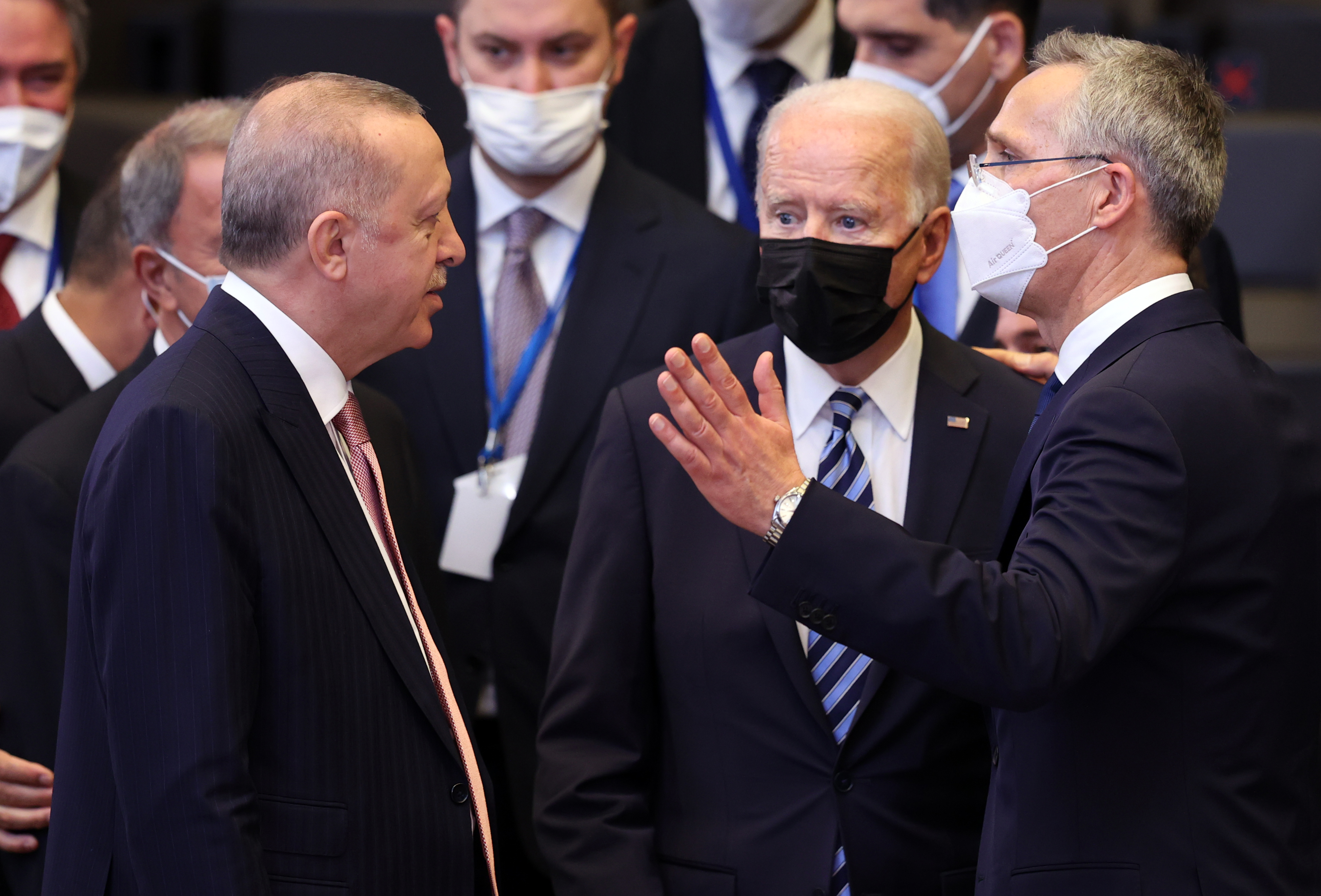 Cumhurbaşkanı Erdoğan, toplantı başlamadan hemen önce ABD Başkanı Joe Biden'la bir süre sohbet etti.