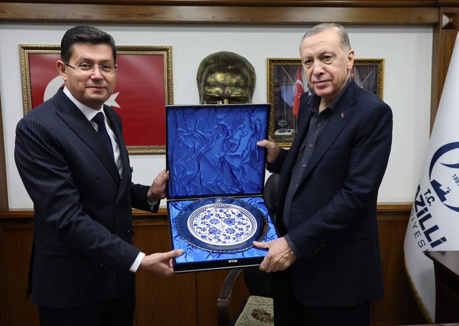 Ziyarette, Cumhurbaşkanı Erdoğan, Özcan'dan ilçede yürütülen çalışmalara ilişkin bilgi aldı.
