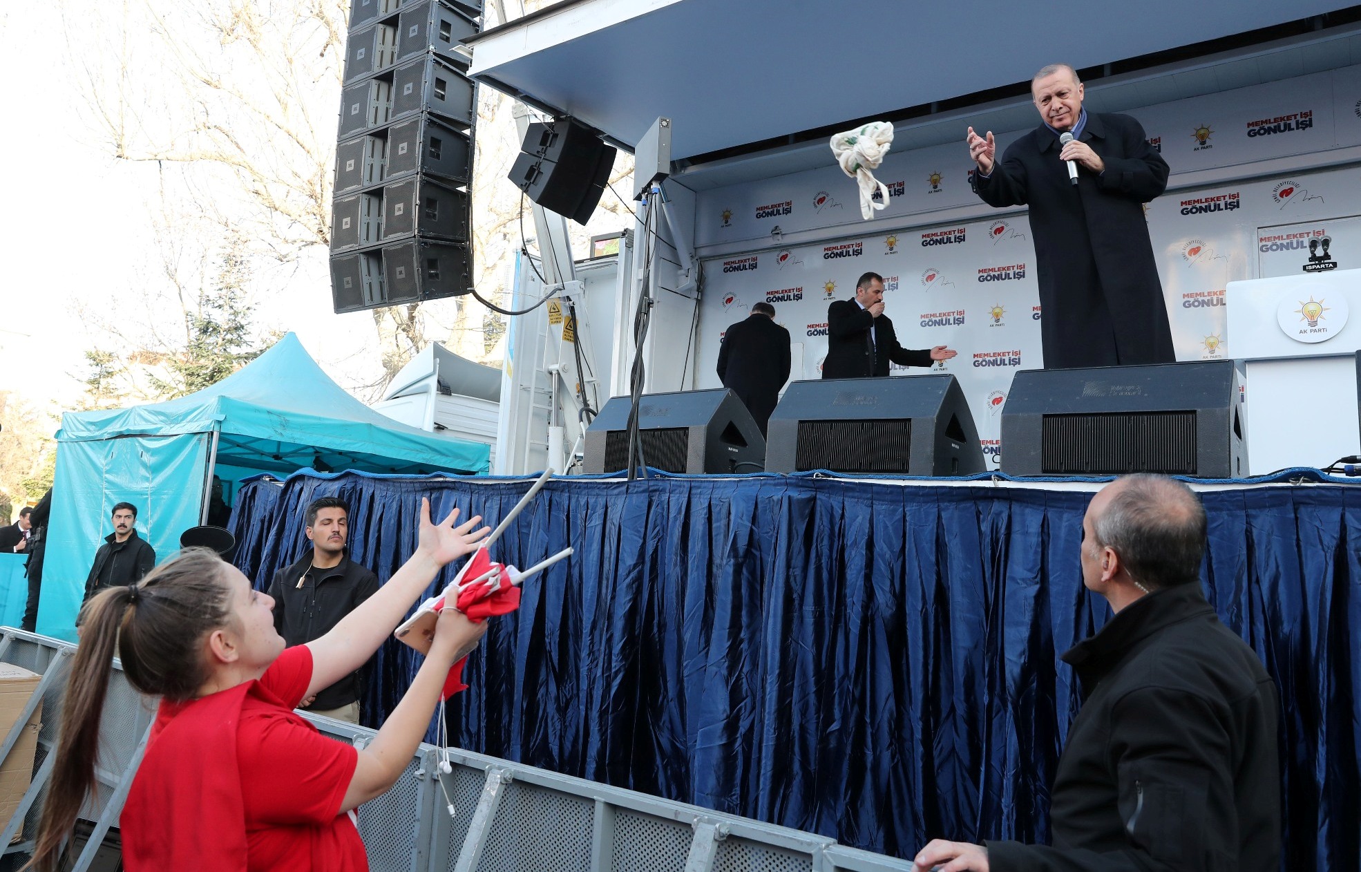 Cumhurbaşkanı Erdoğan, mitinge katılanlara yönelttiği "Isparta, milli iradeye sahip çıkıyor muyuz? Isparta, demokrasiye sahip çıkıyor muyuz? Isparta, Cumhur İttifakı'nı zirveye taşıyor muyuz? Isparta, tevazu, samimiyet ve gayretle memleket işi gönül işi diyor muyuz? Isparta, gönül belediyeciliğine evet diyor muyuz? 31 Mart'ta bir destan daha yazıyor muyuz?" sorulara, olumlu cevap aldı.