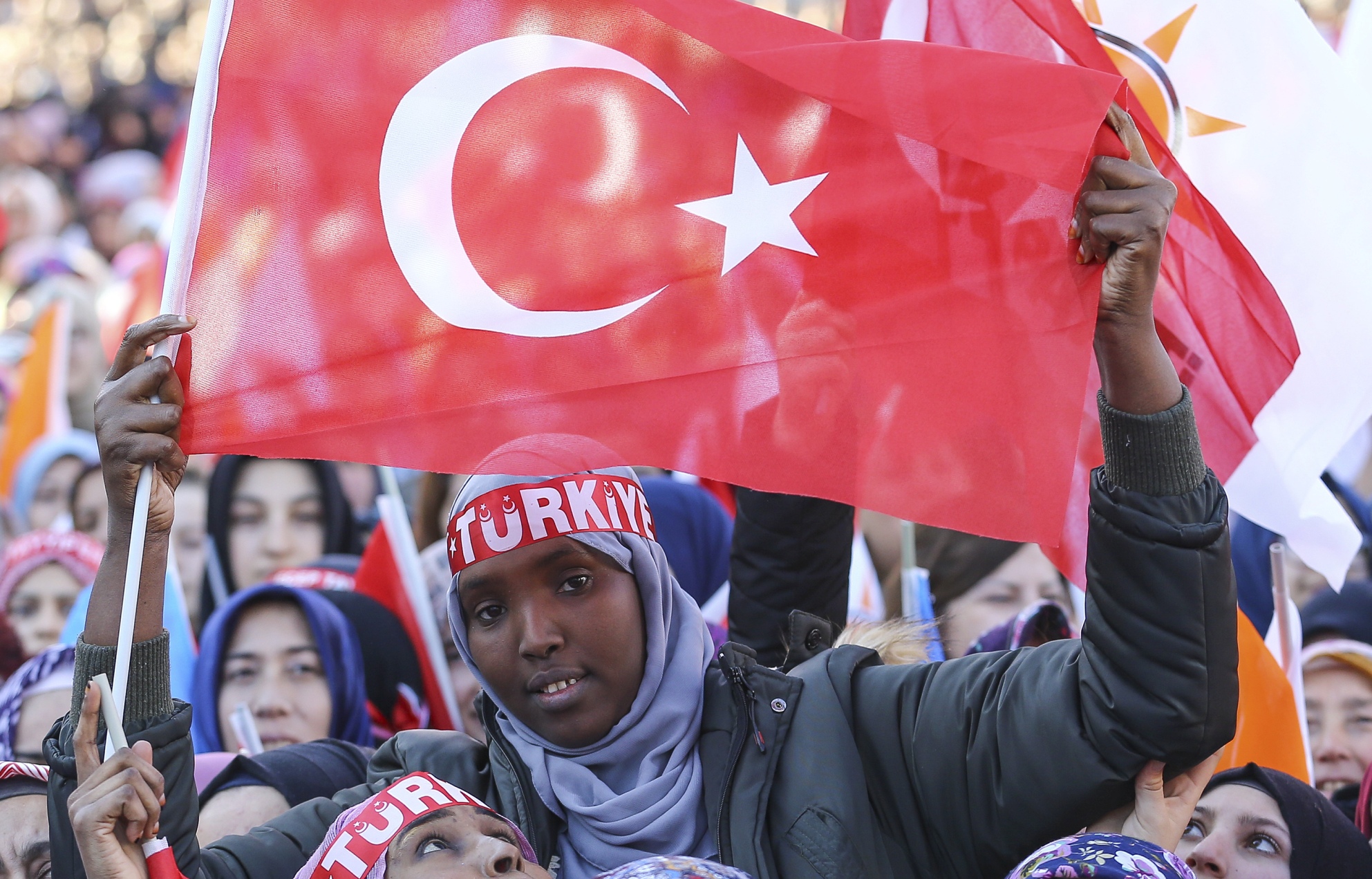 Konuşması sırasında, "Dik dur eğilme bu millet seninle" sloganına Cumhurbaşkanı Erdoğan, "Biz hep dik durduk, dikleşmedik. Sadece ve sadece Rabbimizin huzurunda rükuda ve secdede eğildik, bunun dışında asla" yanıtını verdi.
