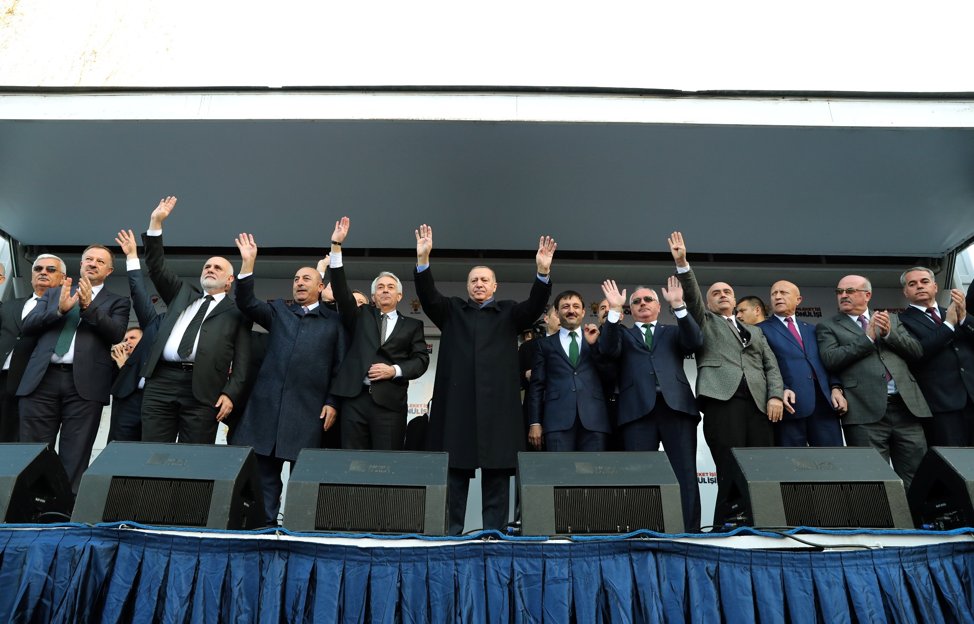 "PKK'dan DEAŞ'a ve FETÖ'ye kadar tüm terör örgütlerine tarihlerinin en ağır darbelerini vuruyoruz. Gabar'da, Cudi'de, Tendürek'te, Kandil'de biz varız. İnlerine girdik. Kaçacak delik arıyorlar. Şimdi de 735 teröristi güvenlik güçlerimiz yakaladı, topladı ve şimdi bunlar hesaba çekiliyor. Fırat Kalkanı ve Zeytin Dalı harekatlarıyla güney sınırımız boyunca kurulmaya çalışılan terör koridoruna büyük darbe indirdik. Binlerce DEAŞ'lı, PKK/YPG'li teröristi etkisiz hale getirerek 41 bin kilometrekarelik alanı terör örgütlerinin zulmünden kurtardık. Böylece proje terör örgütleri aracılığıyla ülkemizin bekasına kastedenlere hiç unutamayacakları bir ders verdik. Daha birkaç yıl öncesine kadar teröristlerin cirit attıkları bölgelerde bugün huzur, emniyet, istikrar var. Cerablus'tan Azez'e, Afrin'den El Bab'a kadar Türkiye'nin kontrolündeki yerlerde barış, özgürlük, demokrasi var. Şu anda buraya Türkiye'ye gelmiş olanlardan 310 bin kişi tekrar geri gönderildi. Bir dönem acıyla, zulümle anılan şehirler bugün Suriye'nin içindeki istikrar adaları olarak göz dolduruyor."