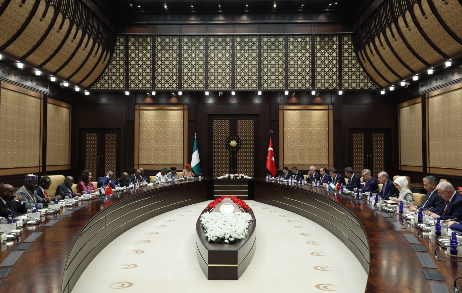 Cumhurbaşkanı Erdoğan ve Tinubu, birbirlerine heyetlerini takdim etti.