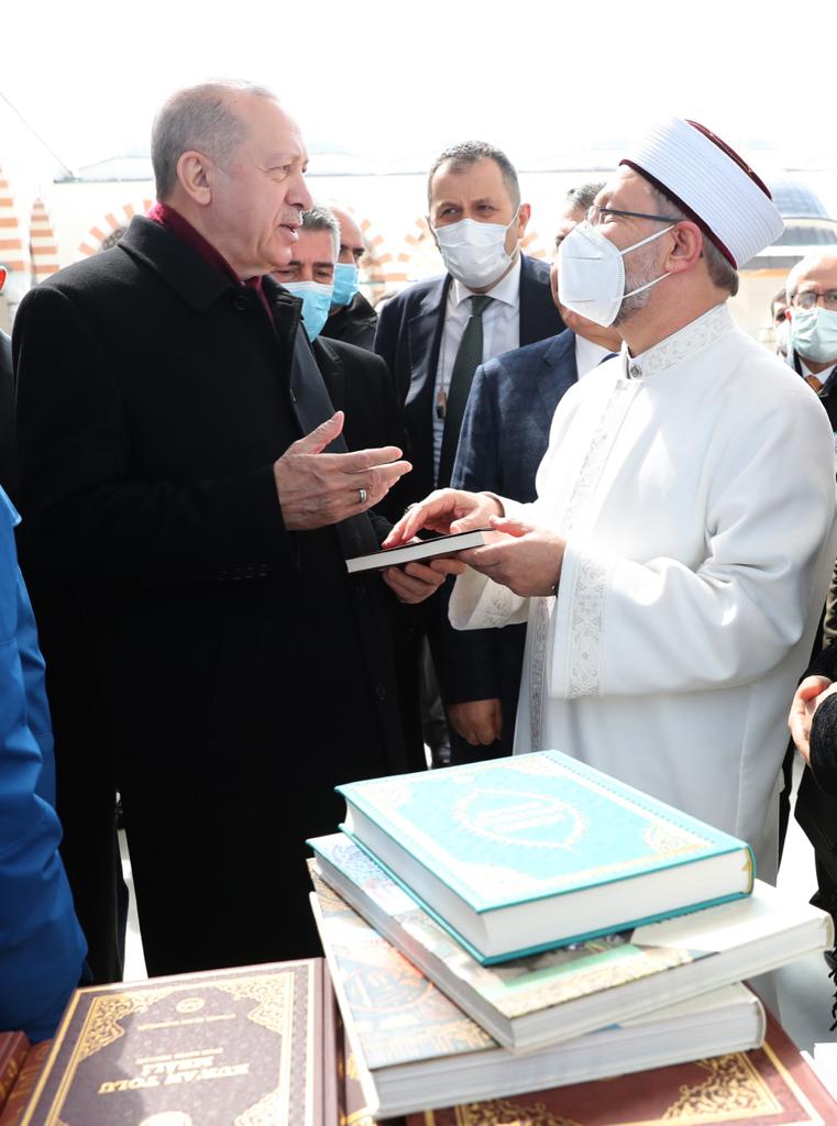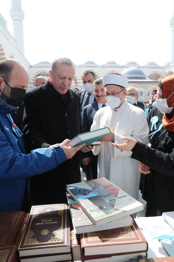 Bu yıl Ankara'da Ahmet Hamdi Akseki Camii, İstanbul'da Fatih Camii ve Büyük Çamlıca Camii'nde açılan kitap ve kültür fuarlarını ramazan ayının bereketlerinden olarak gördüğünü dile getiren Cumhurbaşkanı Erdoğan, "Başı rahmet, ortası mağfiret, sonu ebedi azaptan kurtuluş olan, böyle müstesna bir ay. İçinde Leyle-i Kadr'in olduğu böyle müstesna bir ayın içerisinde maşallah bu kitap fuarlarıyla birlikte bir de Büyük Çamlıca Camii'mizin altında inşallah müzemizi de açıyoruz. Ve bu müzede senede bir, bazen iki kez elimizdeki tüm objeler sergilenecek ve milletimize tamamıyla bu objeler inşallah onların hizmetinde olacak." diye konuştu.