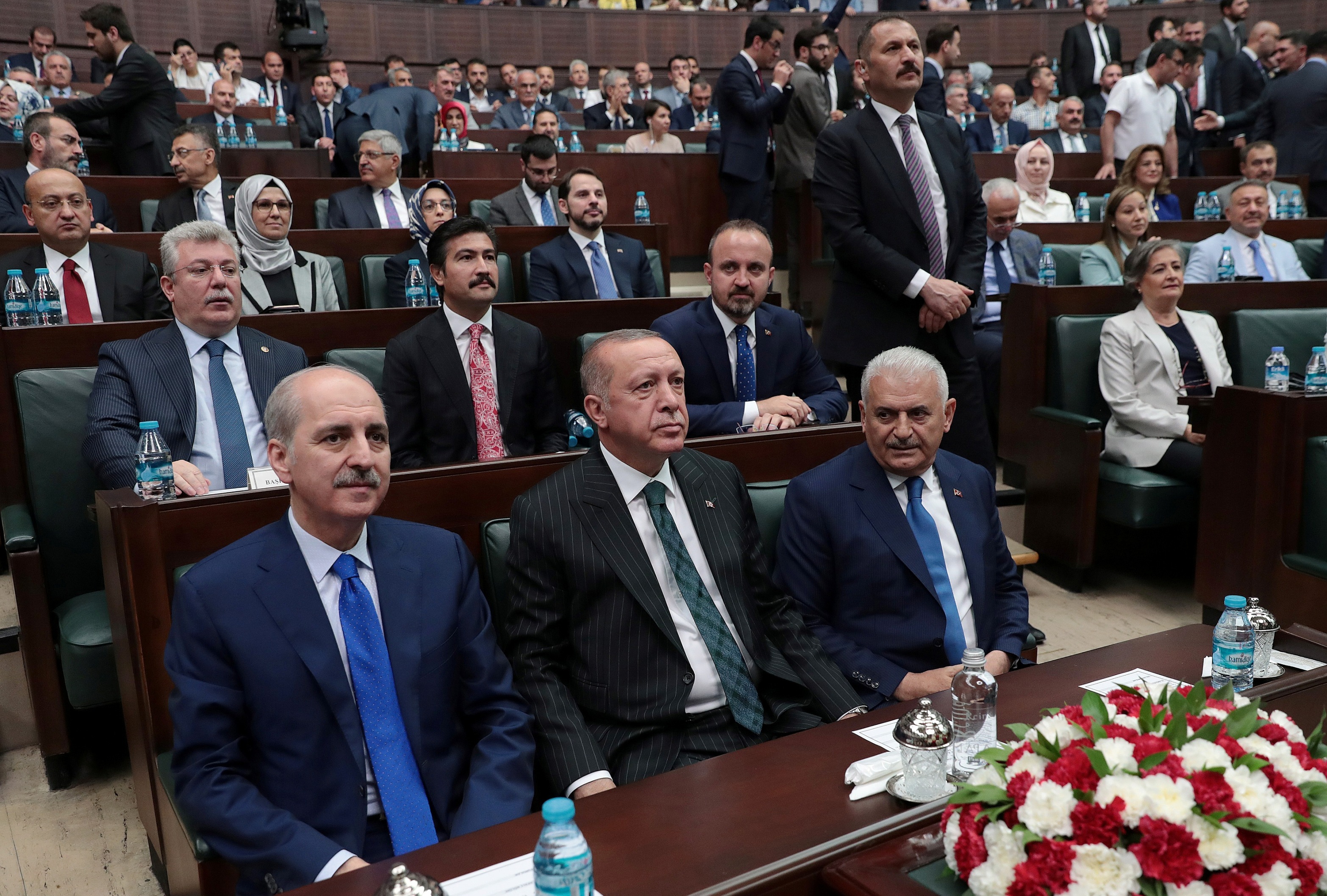 "Bundan sonra tüm mesaimizi ve gücümüzü önümüzdeki gündeme teksif ederek çalışmalarımıza devam edeceğiz. Bizim siyaset anlayışımızda millete küsmek, millete darılmak, hele hele milleti suçlamak asla ve asla yoktur. Tam tersine gerek 31 Mart'ta gerek 23 Haziran'da milletimize kendimizi niçin anlatamadığımızın muhasebesini yapacağız. Her alanda nerelerde eksiklik, kopukluk, yanlışlık olduğunu tespit ederek bunları gidermenin yollarını arayacağız. Bu değerlendirmenin sonucuna göre de atmamız gereken adımları kararlılıkla hayata geçireceğiz ama dışarıdan birilerinin yaptığı tanımlara göre değil biz tanımlamamızı kendi içimizde hep birlikte yapma kudretine sahibiz. Milletimizin verdiği mesajları görmezden gelerek kulağımızın üzerine yatma lüksüne sahip değiliz. Bu bakımdan hem Cumhur İttifakı'na hem partimize hem de şahsımıza gönül veren tüm kardeşlerimizin müsterih olmasını istiyorum."