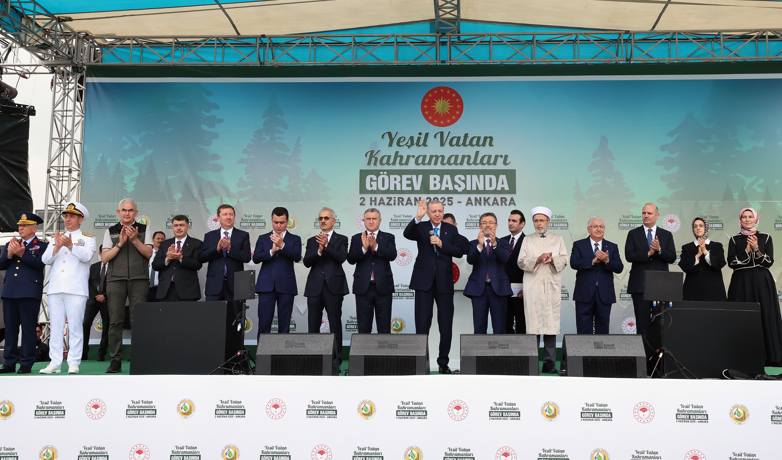 "2025'te Orman teşkilatımıza 8 bin 500 yeni personel kazandırdık. Mühendislerimizle, muhafaza memurlarımızla, işçi ve memurlarımızla 25 bin kardeşimiz Yeşil Vatan'ın dört bir yanında cansiperane bir ruhla çalışmayı sürdürüyor. Aynı şekilde 130 bini aşkın orman yangını gönüllümüz en çetin şartlarda Yeşil Vatan'ı müdafaa ediyor. Ormanlarımızı koruyan, bu uğurda gerektiğinde canlarını hiçe sayan Yeşil Vatan'ın emektarlarına şahsım ve milletim adına teşekkür ediyorum."