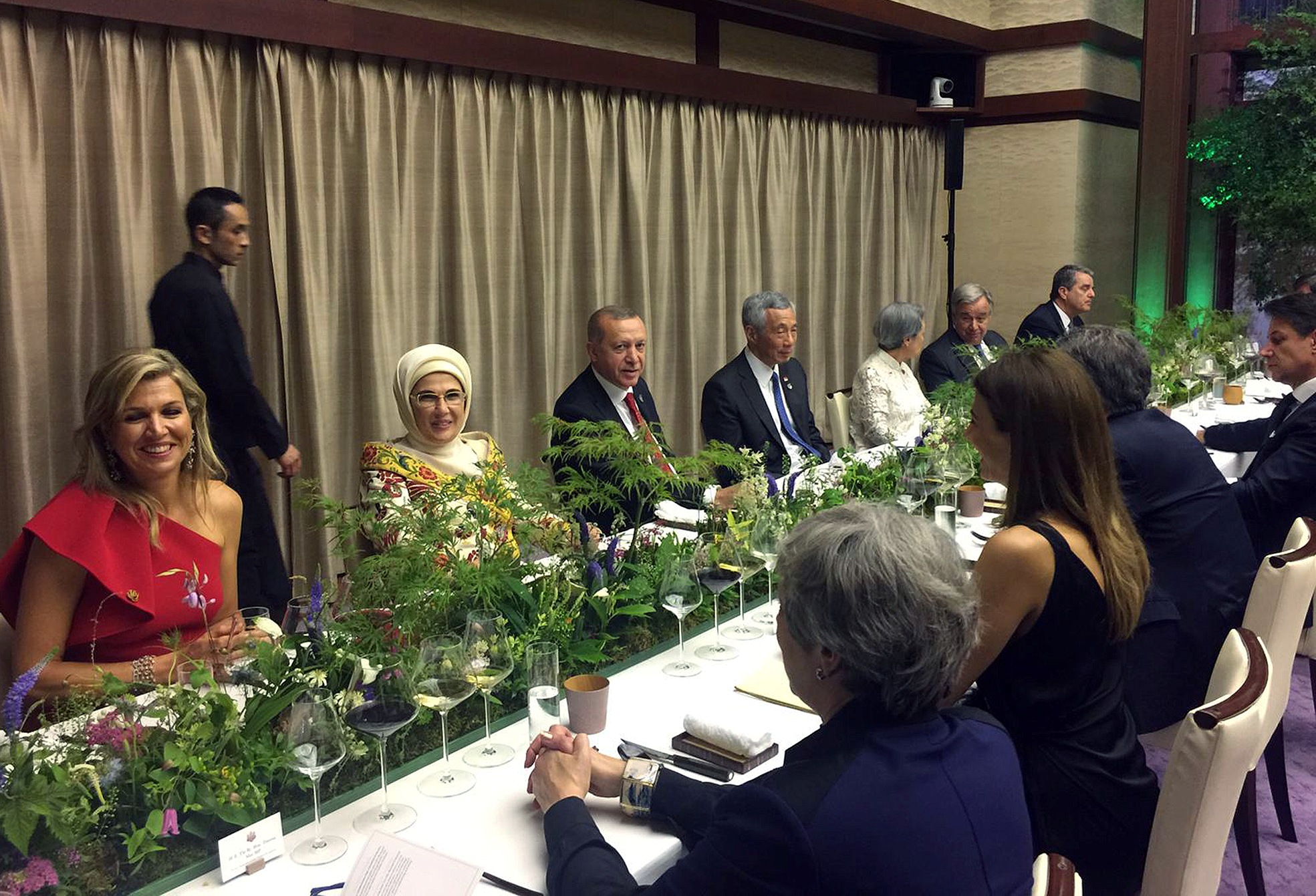 Cumhurbaşkanı Erdoğan ve eşi Emine Erdoğan daha sonra liderler yemeğine katıldı.