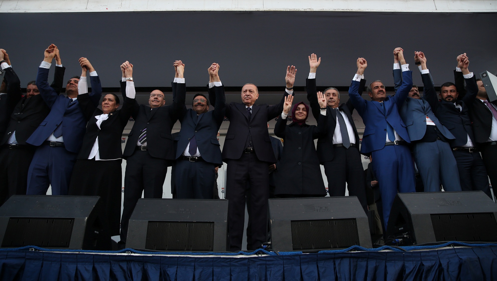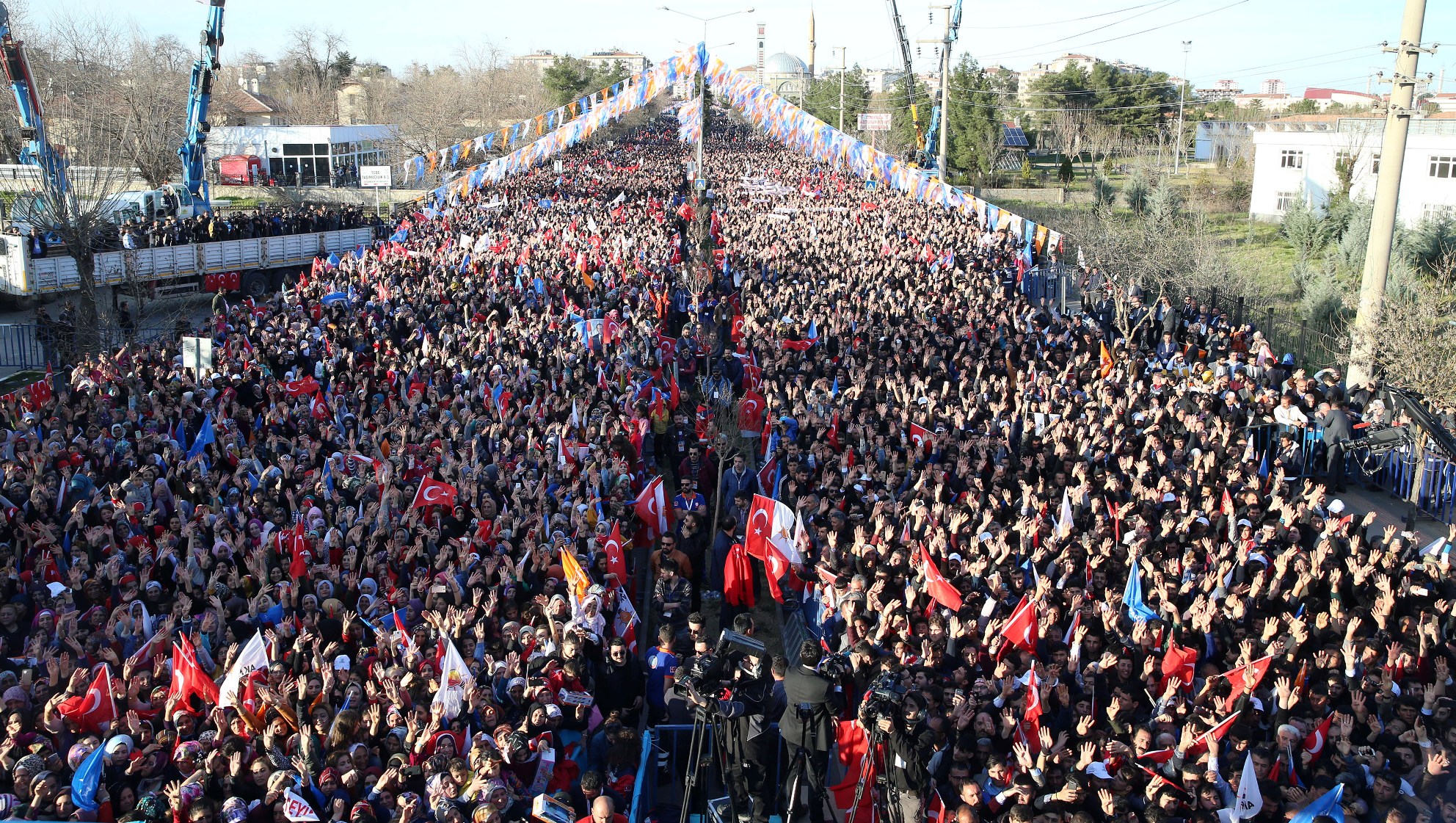 Cumhurbaşkanı Erdoğan, alandaki vatandaşlarla Rabia işareti yaparak, 31 Mart'ta vatandaşlardan "AK Parti belediyeciliği gönül belediyeciliği" diyerek geleceğe sahip çıkma, tevazu, samimiyet ve gayretle "memleket işi gönül işi" demenin sözünü aldı.