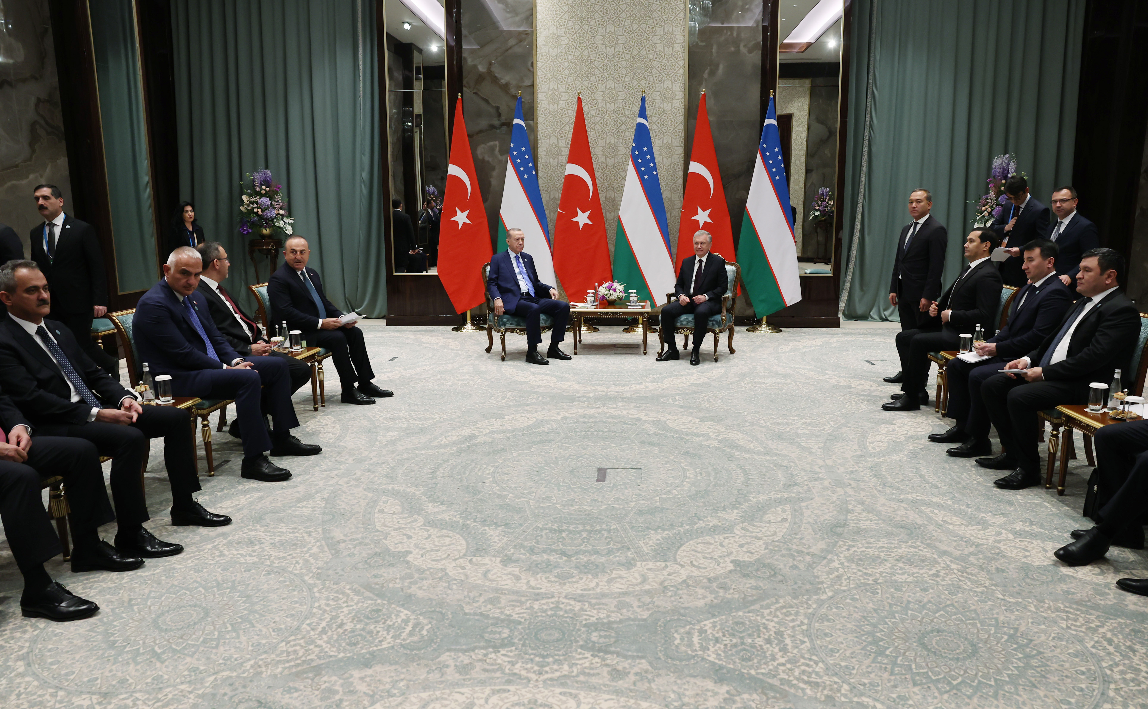 Cumhurbaşkanı Recep Tayyip Erdoğan, Türk Devletleri Teşkilatı 9'uncu Zirvesi'ne katılmak üzere gittiği Özbekistan'da, Özbekistan Cumhurbaşkanı Şevket Mirziyoyev ile bir araya geldi.