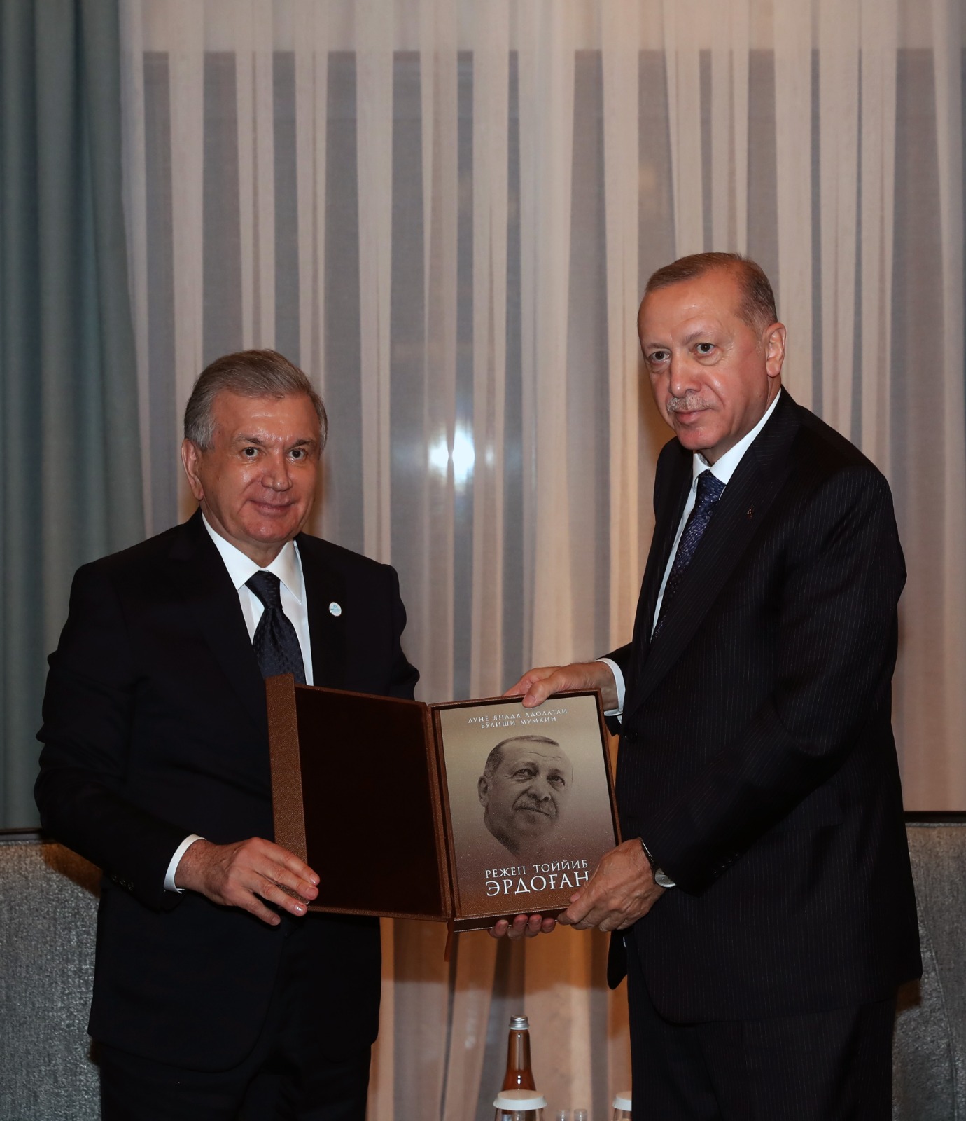 Cumhurbaşkanı Recep Tayyip Erdoğan, Özbekistan Cumhurbaşkanı Şevket Mirziyoyev ile bir araya geldi.