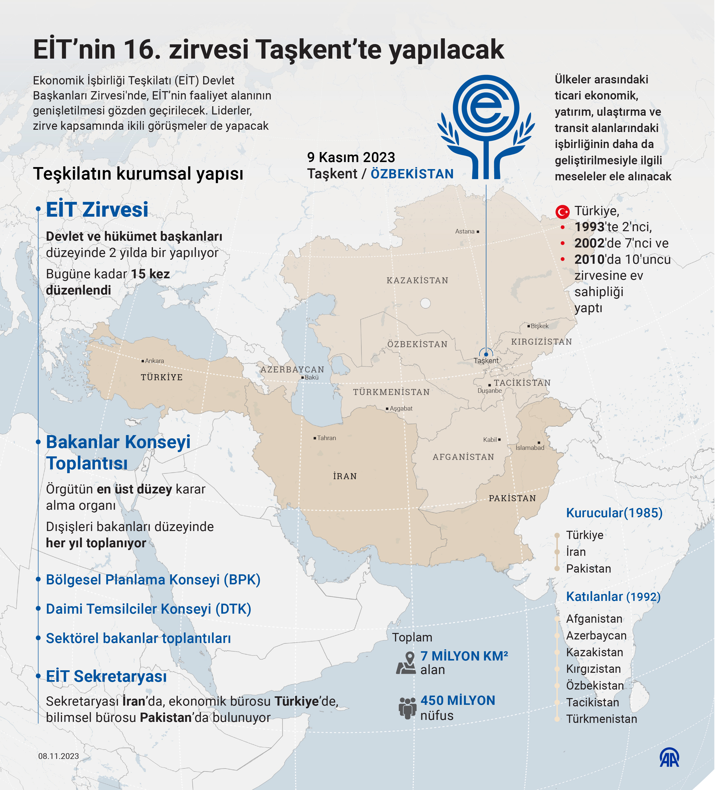 Zirve çerçevesinde, "Türkiye'nin kurucu üyesi olduğu Teşkilat'ın etkinliğinin artırılması, üye ülkeler arasında ticaret, ulaştırma ağları ve bağlantısallığın geliştirilmesi" gibi konularda fikir alışverişinde bulunulması planlanıyor.