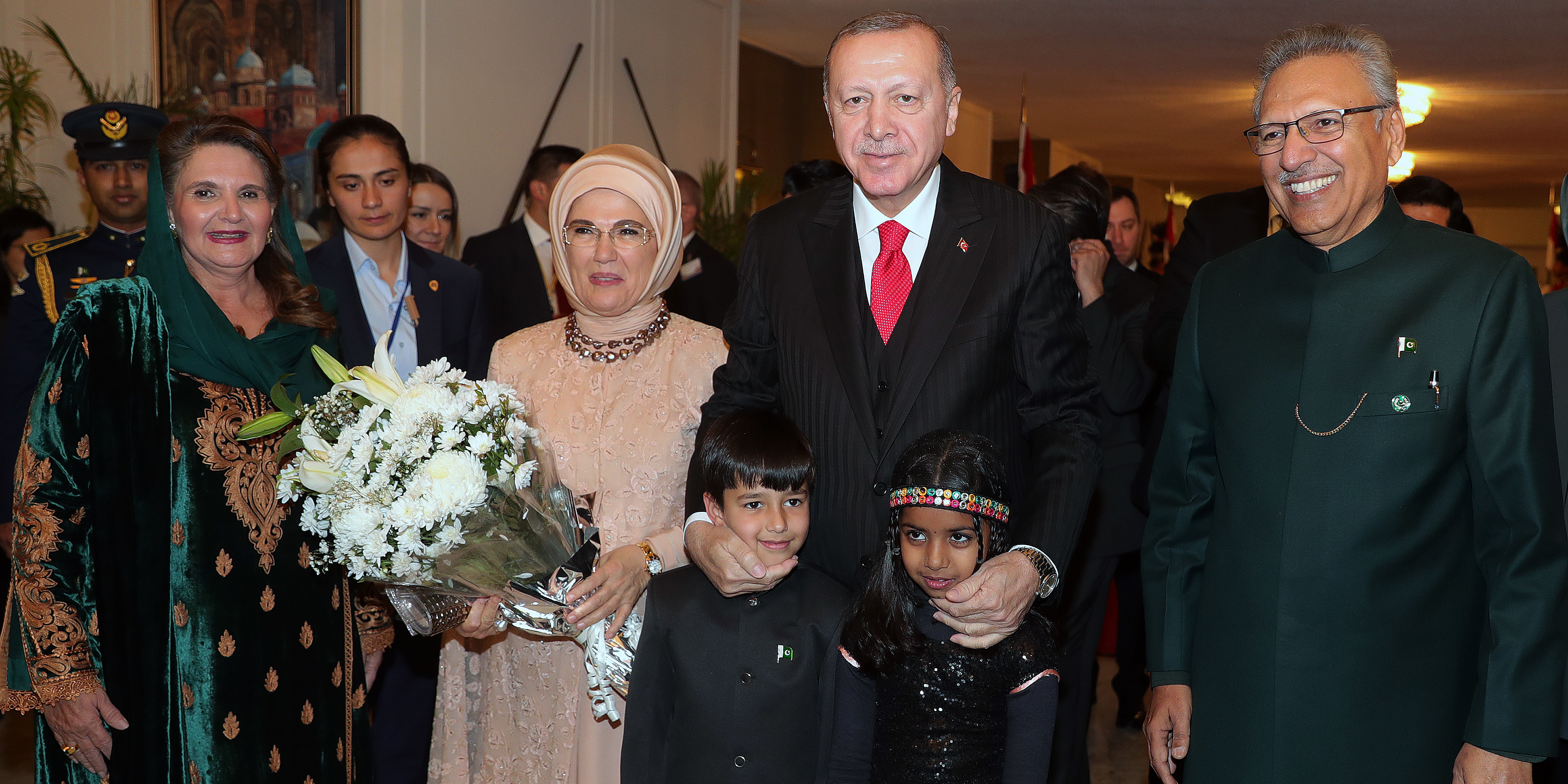 Cumhurbaşkanı Erdoğan daha sonra Pakistanlı mevkidaşı Alvi'nin onuruna verdiği yemeğe katıldı.