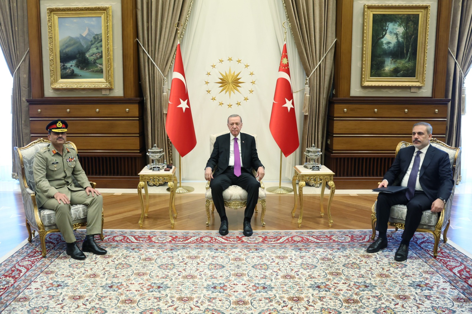 Cumhurbaşkanı Recep Tayyip Erdoğan, Pakistan Kara Kuvvetleri Komutanı Orgeneral Syed Asım Munir'i Cumhurbaşkanlığı Külliyesi'nde kabul etti. Kabulde, Dışişleri Bakanı Hakan Fidan da hazır bulundu.