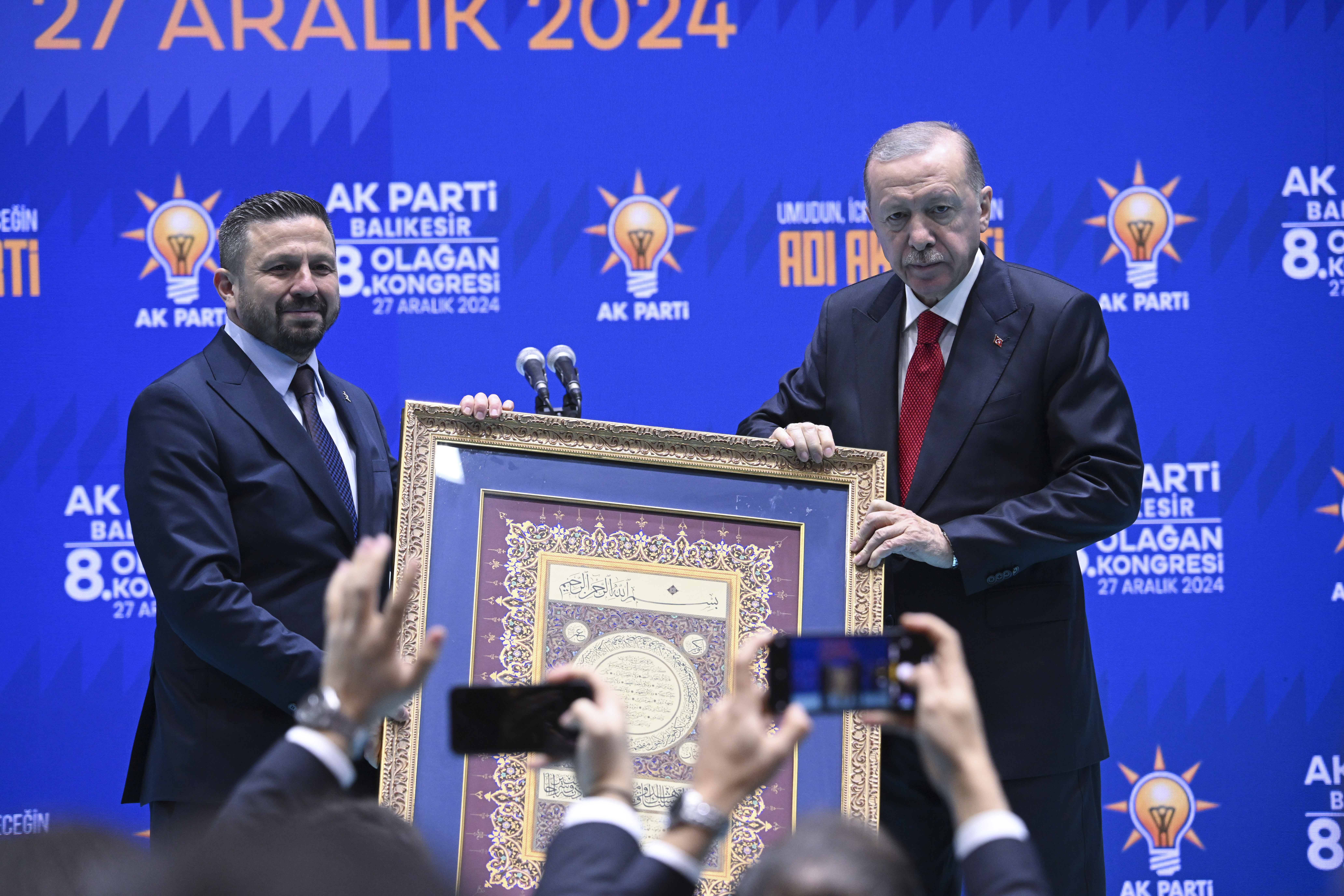 Partisinin 8. Olağan İl Kongresi'nin şehirle birlikte Türkiye, millet ve demokrasi için hayırlara vesile olmasını dileyen Cumhurbaşkanı Erdoğan, kuruluşundan bugüne kadar AK Parti Balıkesir teşkilatlarında vazife yapanlara şükranlarını sundu, vefat edenlere de Allah'tan rahmet niyaz etti.