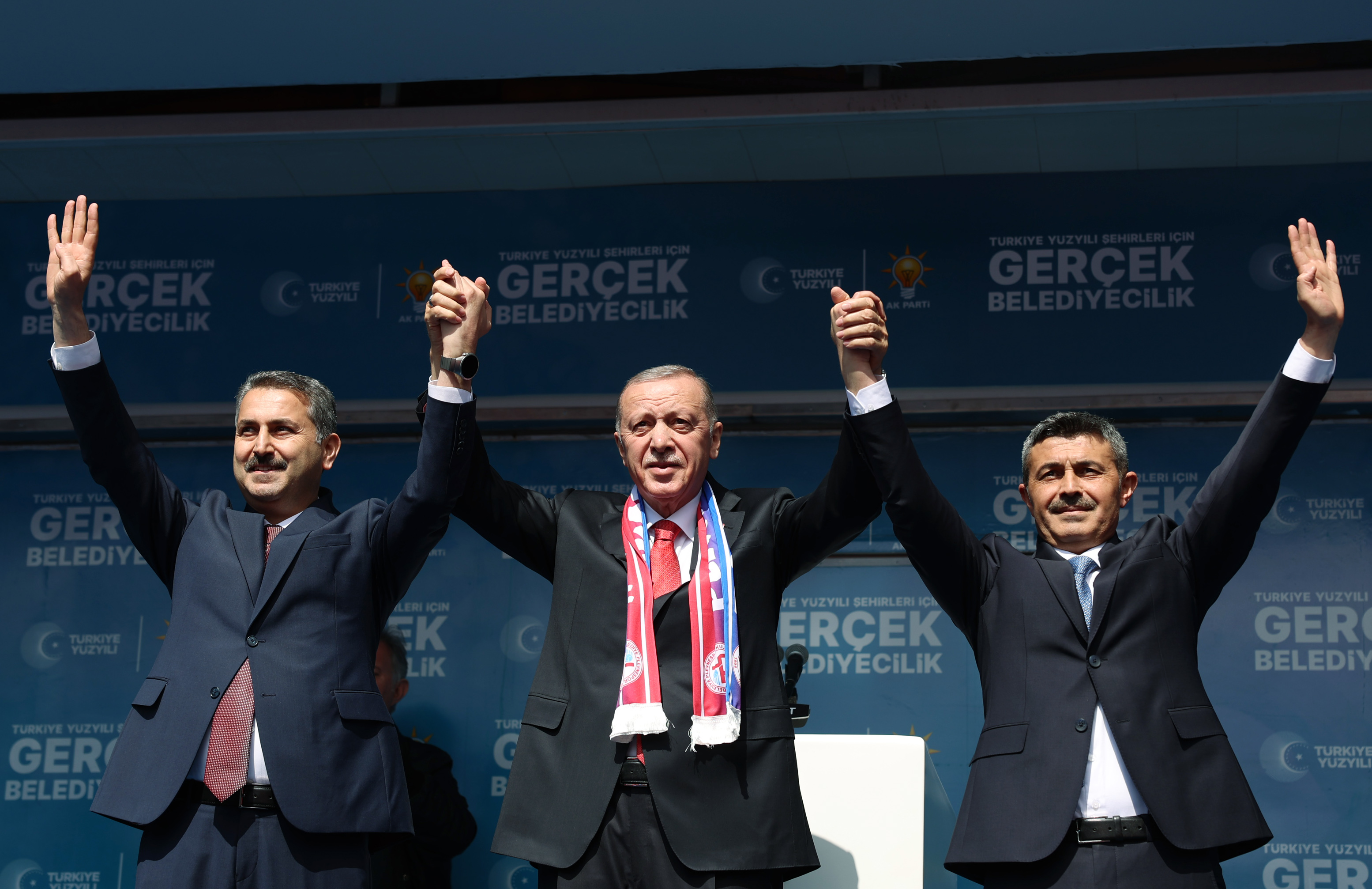 Cumhurbaşkanı Erdoğan, konuşmasının ardından AK Parti Tokat Belediye Başkanı ve adayı Eyüp Eroğlu ve ilçe belediye başkan adaylarıyla vatandaşları selamladı.