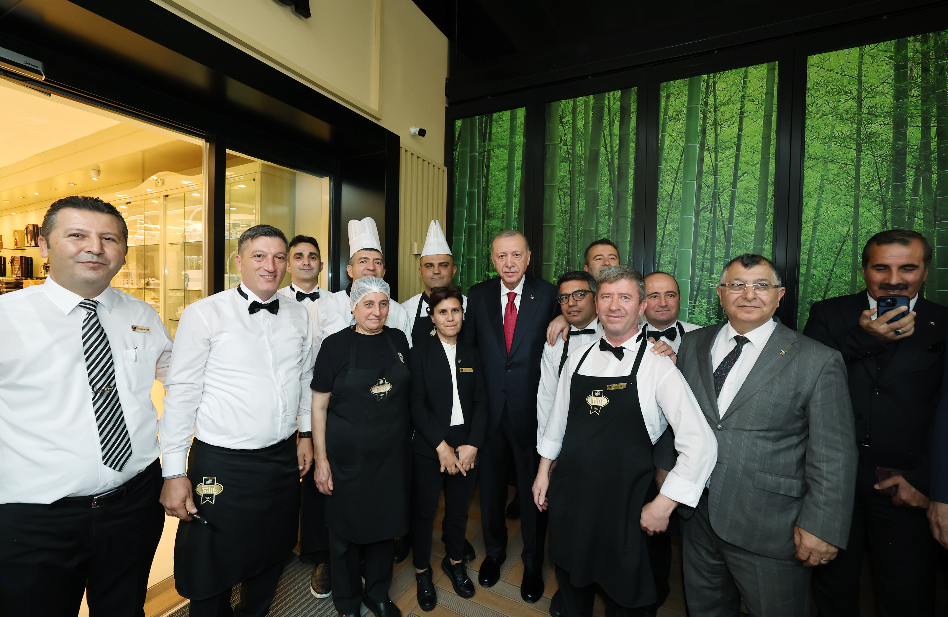 Yurt Dışı Müteahhitlik Hizmetleri Başarı Ödülleri Töreni'ne katılan Cumhurbaşkanı Erdoğan, daha sonra bir pastaneye girdi.