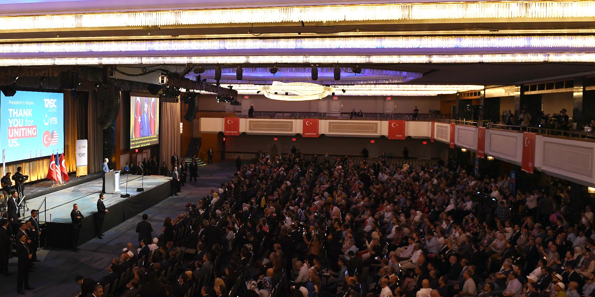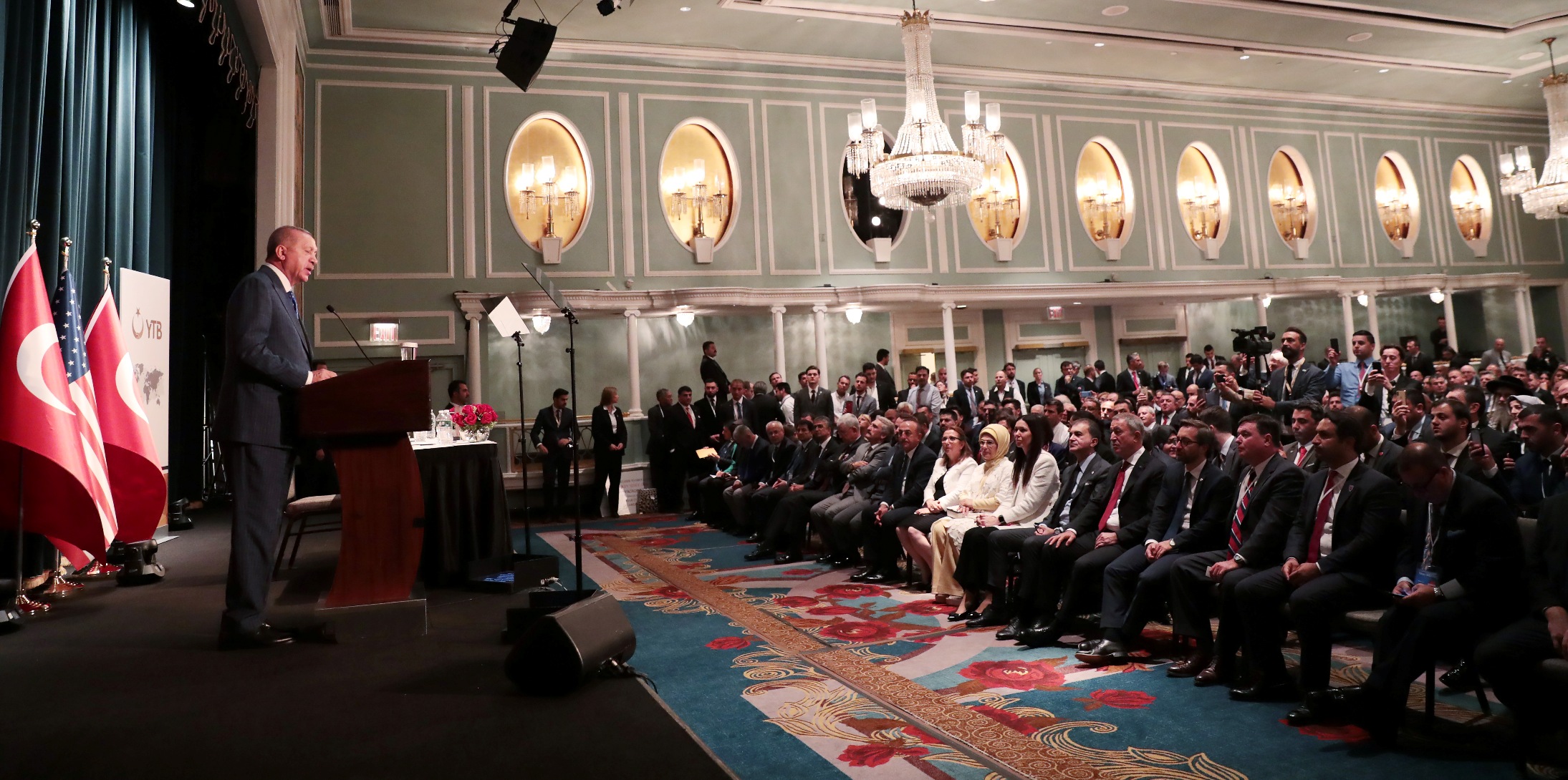 Birleşmiş Milletler 74'üncü Genel Kurulu görüşmelerine katılmak üzere ABD'de bulunan Cumhurbaşkanı Recep Tayyip Erdoğan Erdoğan, Türk-Amerikan Ulusal Yönlendirme Komitesince Hilton Midtown Otel'de düzenlenen etkinlikte ABD'deki Türk, soydaş ve Müslüman toplumuyla bir araya geldi.