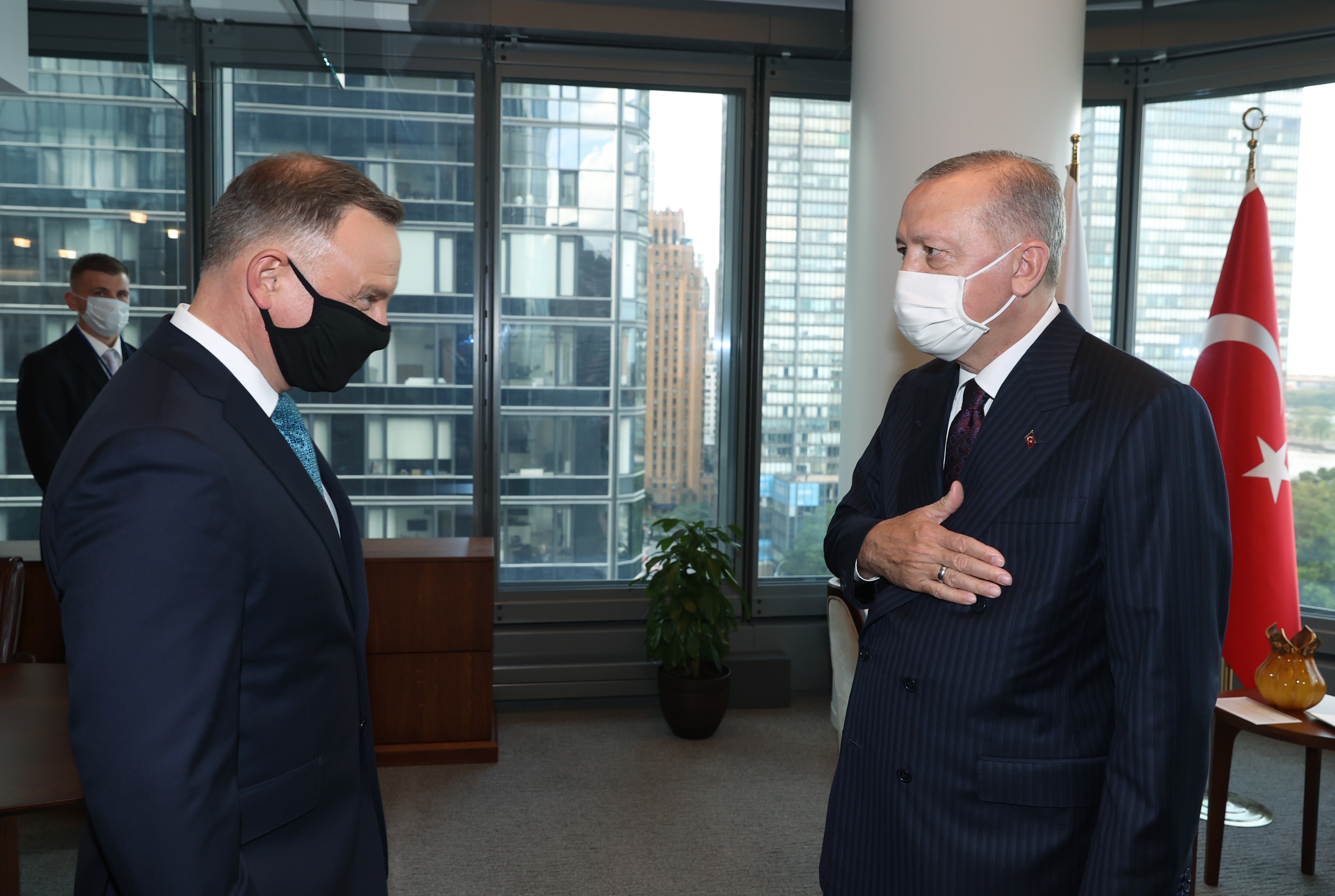 Birleşmiş Milletler 76. Genel Kurulu'na katılmak üzere New York'ta bulunan Cumhurbaşkanı Recep Tayyip Erdoğan, Polonya Cumhurbaşkanı Andrzej Duda ile bir araya geldi.