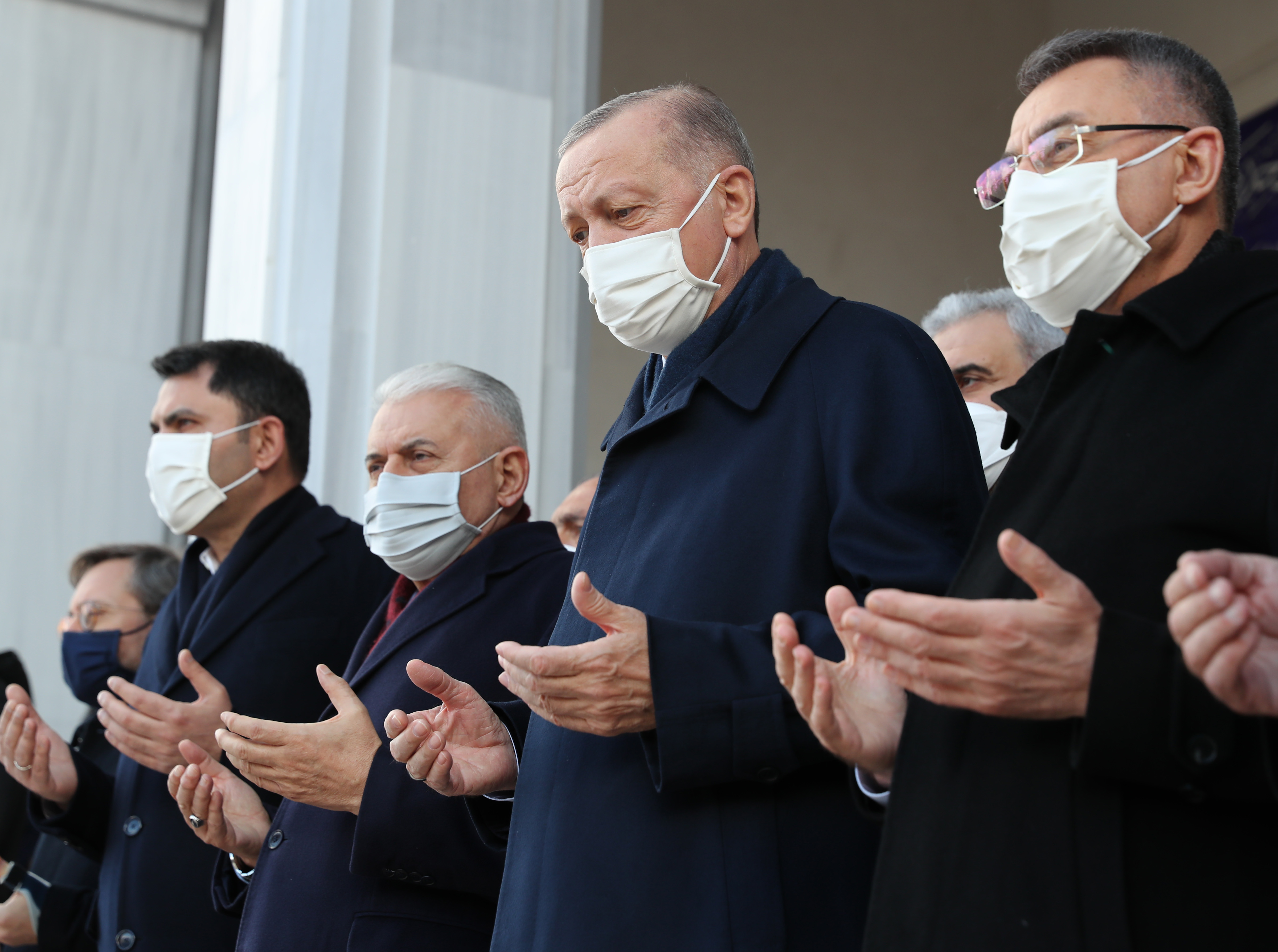 Cumhurbaşkanı Erdoğan'a Cumhurbaşkanı Yardımcısı Fuat Oktay, Çevre, Şehircilik ve İklim Değişikliği Bakanı Murat Kurum, AK Parti Genel Başkanvekili Binali Yıldırım, Cumhurbaşkanlığı İletişim Başkanı Fahrettin Altun, AK Parti İstanbul İl Başkanı Osman Nuri Kabaktepe, milletvekilleri ve belediye başkanları da eşlik etti.