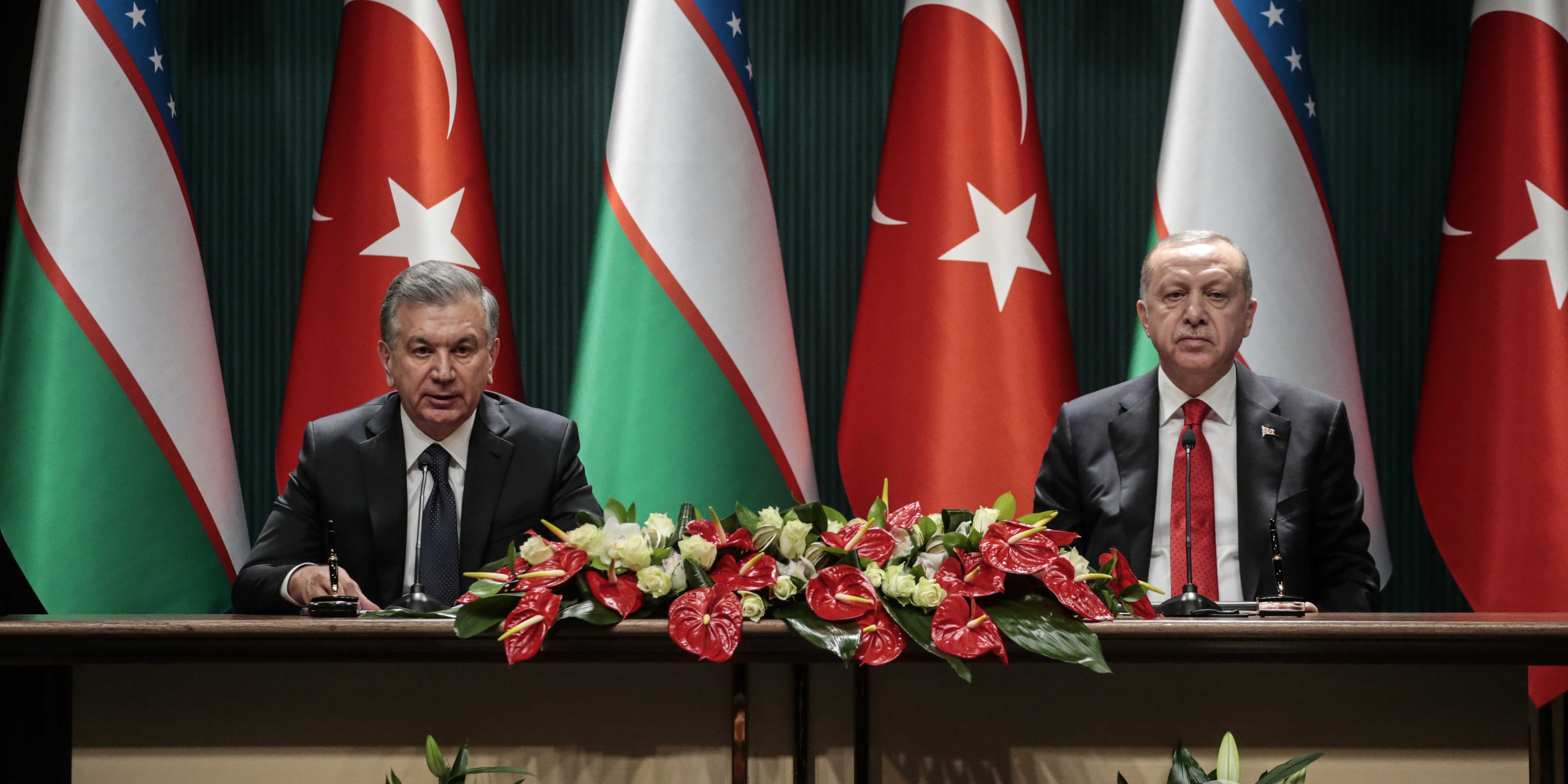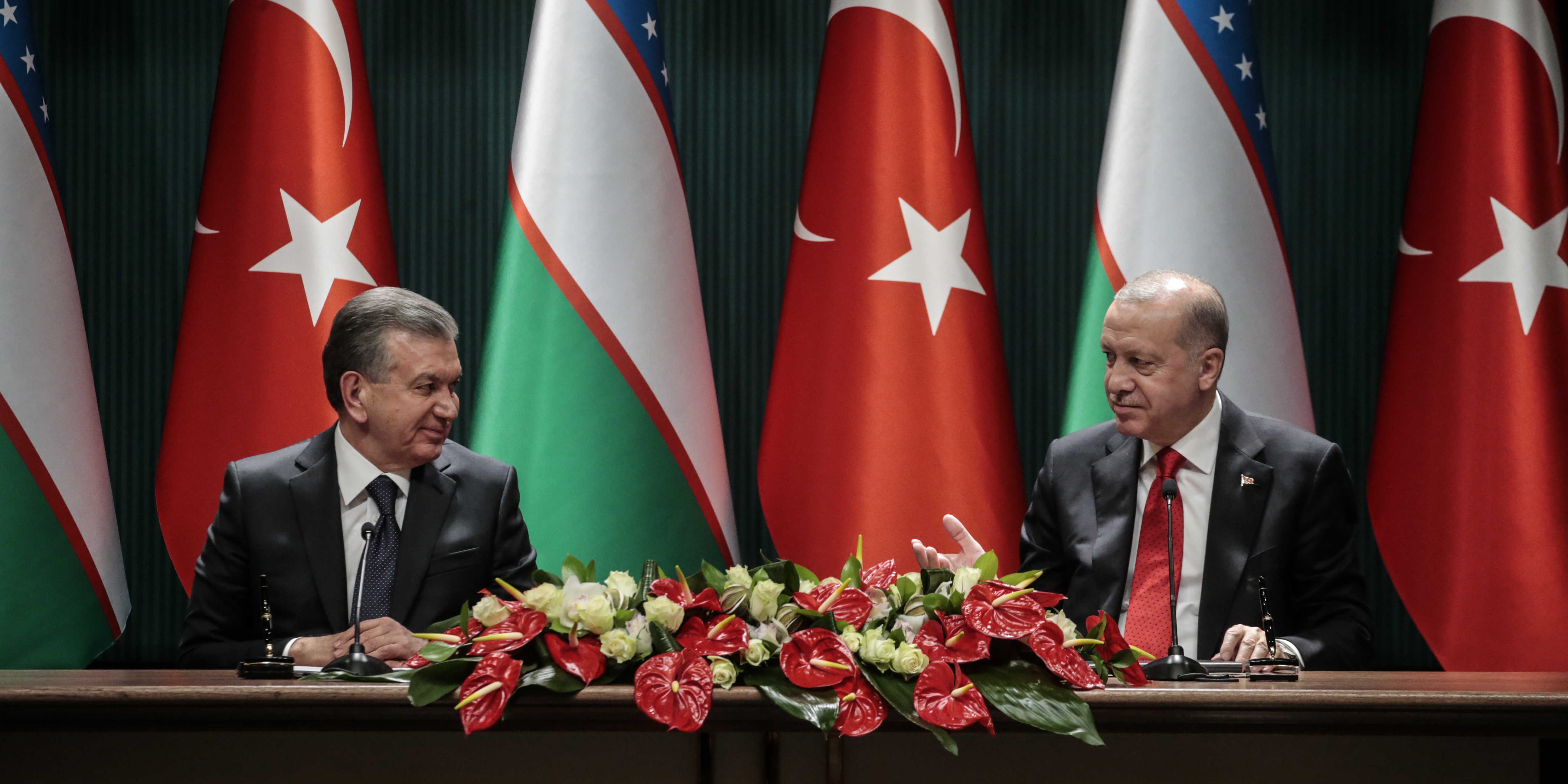 Cumhurbaşkanı Erdoğan, "Özbekistan ile ilişkilerimizi ortak tarih, dil ve kültürümüz temelinde güçlü kardeşlik bağlarına dayanan stratejik ortaklık olarak tanımlıyoruz. Özbekistan'ın milli şairi merhum Abdulla Aripov'un o veciz ifadesiyle, 'bizim dilimiz bir, dinimiz bir, imanımız birdir.' Türkiye Özbekistan kardeşliği maziden atiye uzanan kadim bir kardeşliktir. Geçen sene Bakü'de yapılan 7'nci Liderler Zirvesi'nde Özbekistan'ın Türk Keneşi'ne tam üyeliğiyle aramızdaki bu birlikteliği daha da perçinledik." şeklinde konuştu.