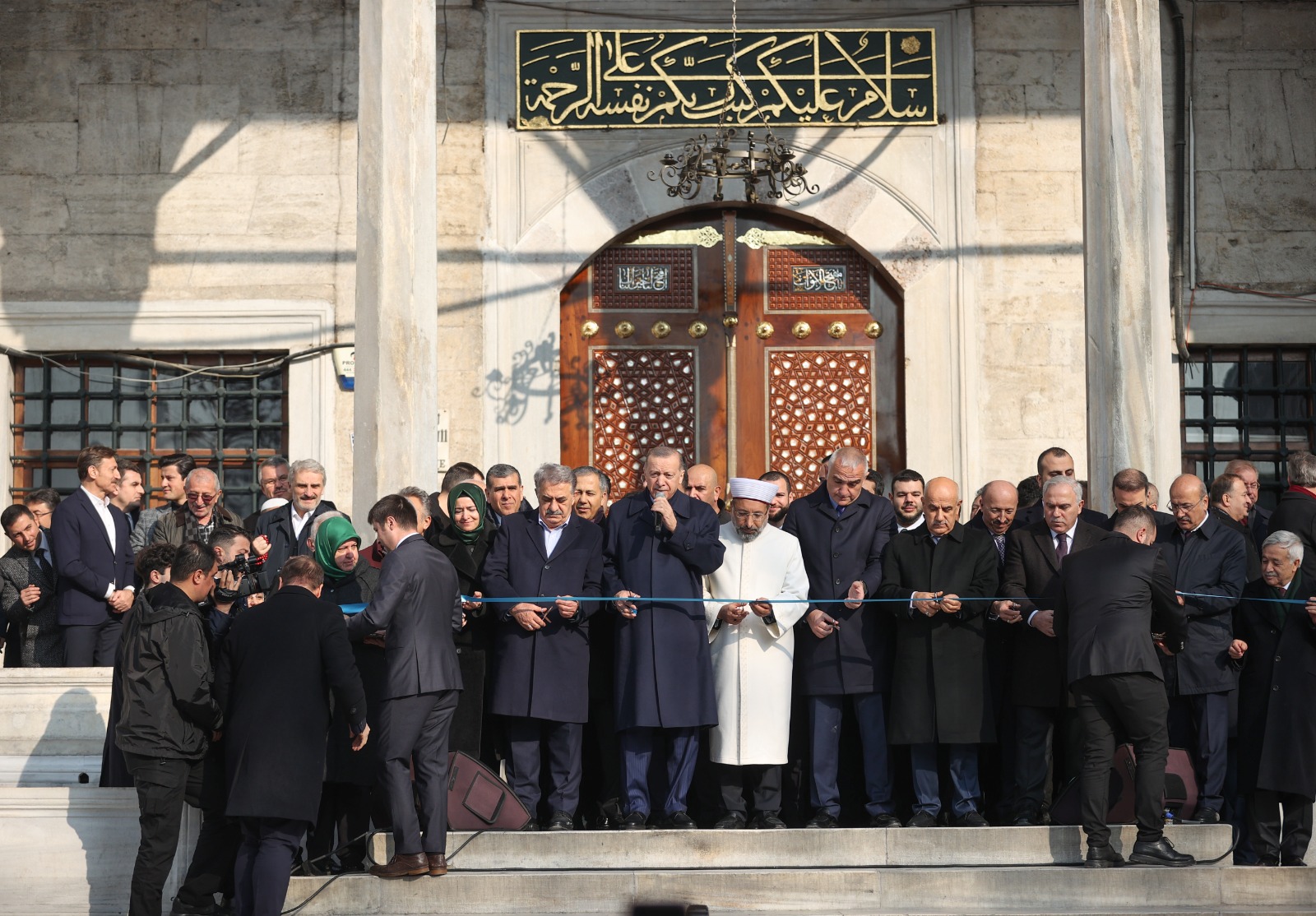 Osmanlı Padişahı 3. Murad'ın eşi Safiye Sultan tarafından başlatılan, Eminönü'ndeki Yeni Cami inşaatının 1665'te Sultan 4. Mehmed'in annesi Hatice Turhan Sultan tarafından tamamlandığını aktaran Cumhurbaşkanı Erdoğan, caminin restorasyonu hakkında şu bilgileri verdi: