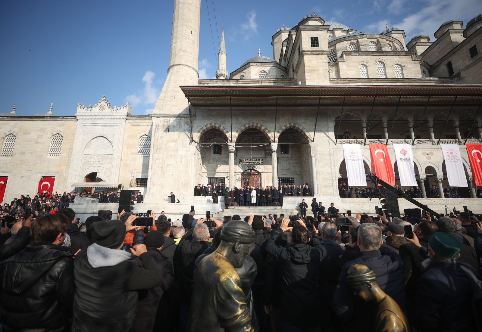 "Çünkü Yeni Cami, öyle bir kenara konulacak cami değil. Burada benim de hatıram var. İmam hatip okulu dördüncü sınıfta okurken bir Kadir Gecesi burada Feyzullah Hoca'mızla vaaz verdik. Bir vaaz o verdi, arkasından ben devam ettim, bir vaaz da ben verdim. Nerelerden nerelere geldik. Ve Yeni Cami'nin bizde böyle bir hatırası da var. Rabb'im yar yardımcımız olsun. Rabb'im birliğimizi, beraberliğimizi daim kılsın. Bu birlik beraberlik bizim en büyük bayramımız olacak inşallah. Sizleri birliğimizde, beraberliğimizde daim olarak bu yola devamınızı özellikle istiyorum. Sizleri Allah'a emanet ediyorum. Tüm şehitlerimiz için gelin birer Fatiha okuyalım diyorum."