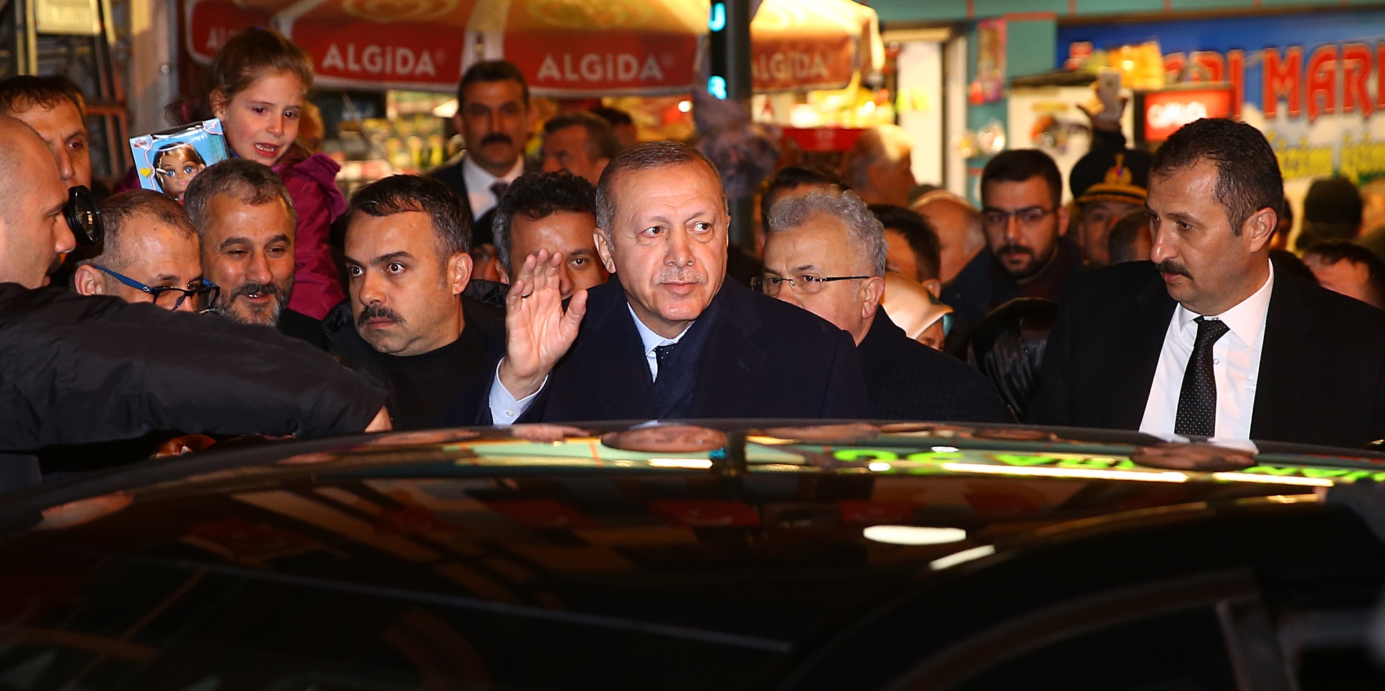 Artvin'de katıldığı toplu açılış töreninin ardından helikopterle memleketi Güneysu ilçesine gelen Cumhurbaşkanı Erdoğan, makam aracından inip, otobüs içerisinden kendisini bekleyen vatandaşları selamladı.