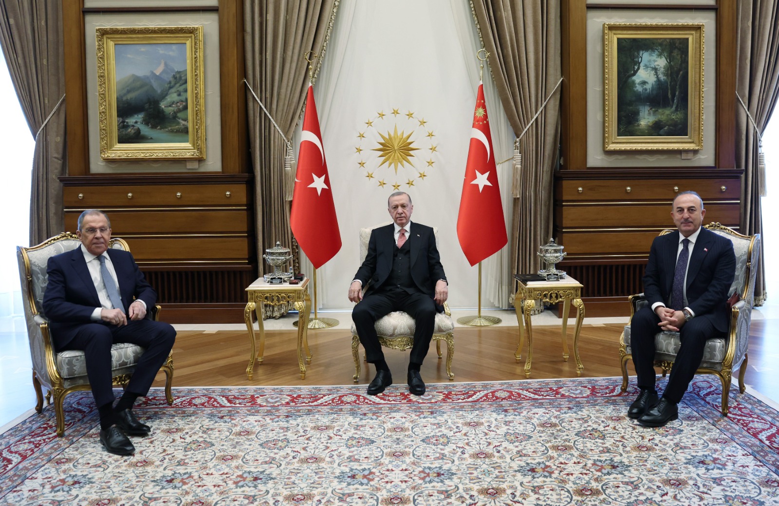 Cumhurbaşkanı Recep Tayyip Erdoğan, Rusya Dışişleri Bakanı Sergey Lavrov'u kabul etti Cumhurbaşkanlığı Külliyesi'ndeki kabulde Dışişleri Bakanı Mevlüt Çavuşoğlu da hazır bulundu.
