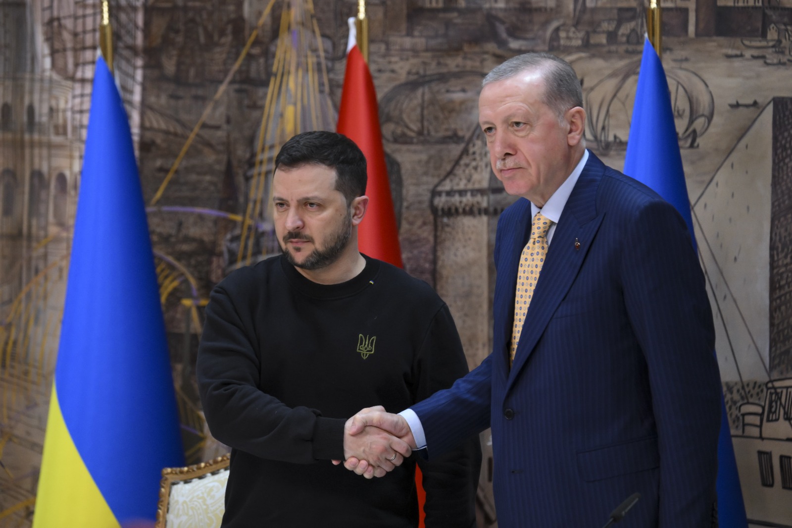 Ukrayna Devlet Başkanı Zelenskiy, Cumhurbaşkanlığı Dolmabahçe Ofisi'nde Cumhurbaşkanı Recep Tayyip Erdoğan ile görüşmesinin ardından düzenlenen ortak basın toplantısında konuştu.
