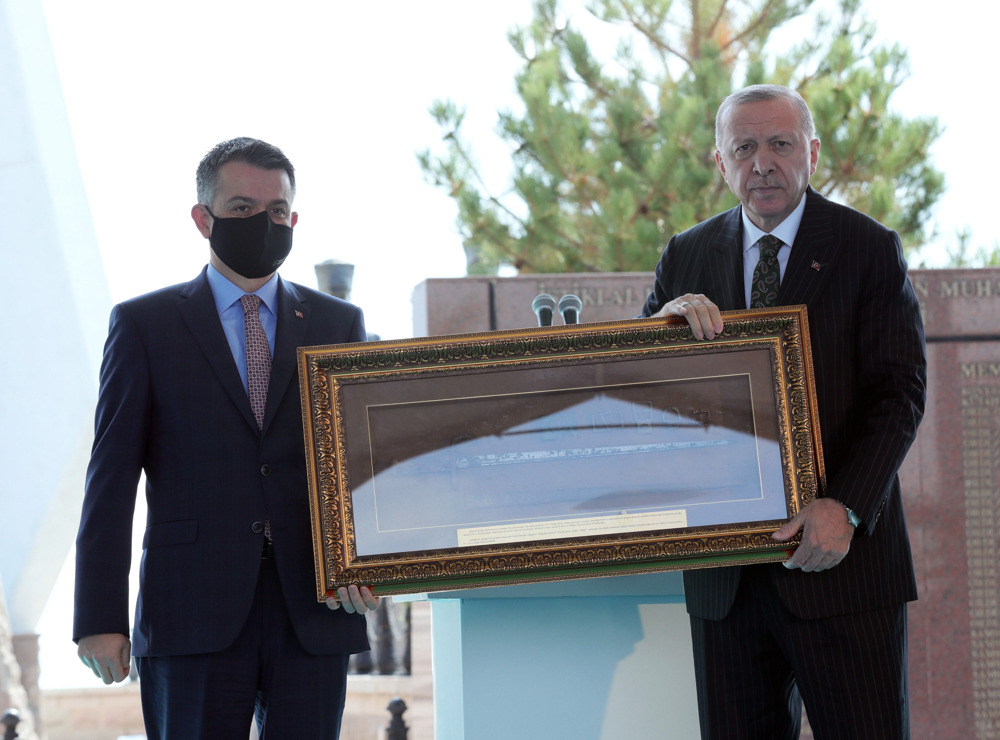 "Sakarya Savaşı'nın yaşandığı Polatlı ve Haymana'da halihazırda yedi anıt şehitliğimiz bulunuyor. Ayrıca bu zaferin kazanıldığı bölgeyi tarihi milli park ilan ederek kapsamlı bir ihya çalışması başlattık. Yaptığımız restorasyon çalışmalarıyla çarpışmaların yaşandığı bölgeleri, alt ve üst yapı tesisleri, ziyaretçi merkezleri, müzelerle donatarak tarih hafızamıza kazandırdık. Bu kapsamda yapılan Sakarya Meydan Muharebesi ve Türk Tarihi Tanıtım Merkezi ile Haymana Ziyaret Merkezi ve Şehit Binbaşı Hüseyin Avni Alparslan Şehitliği'nin açılışını canlı bağlantıyla gerçekleştireceğiz. Tüm bu eserleri, gelecek nesillere, verdiğimiz mücadelenin ve kazandığımız zaferlerin en doğru şekilde anlatılması bakımından önemli görevler ifa edeceğine inanıyorum."