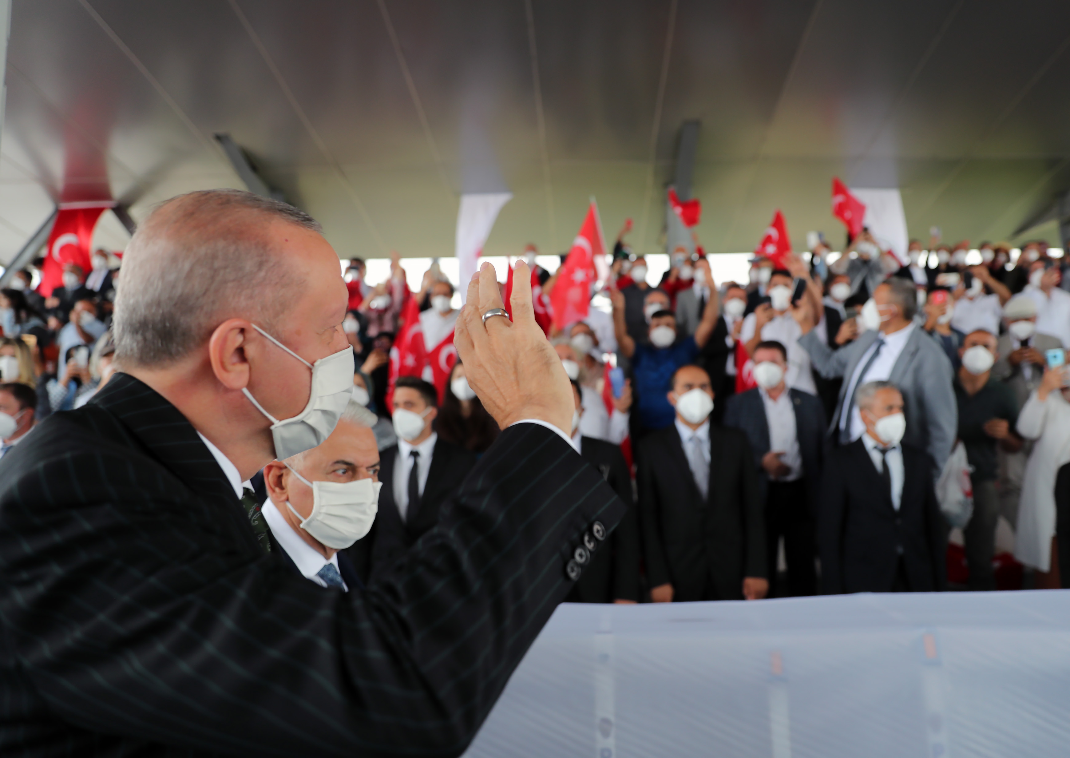 Cumhurbaşkanı Erdoğan, kendileri için esas olanın millet iradesi olduğunu belirterek "Cumhuriyet'imizin 100. yılında Türkiye'yi muasır medeniyet seviyesinin üzerine çıkarmayı hedefleyen mücadelemizin başarıya ulaşması için son nefesimize kadar çalışacağız. Onun için tek millet, tek vatan, tek devlet ve tek bayrak. Malazgirt'ten bu yana kazandığımız hiçbir zafer gibi bunun da kolay olmayacağını biliyoruz. Dışarıdan ve içeriden pek çok engeli aşarak bugünlere nasıl geldiysek inşallah menzile de o şekilde ulaşacağız. Bunun için de bir olacağız, iri olacağız, diri olacağız, kardeş olacağız ve hep birlikte Türkiye olacağız." dedi.