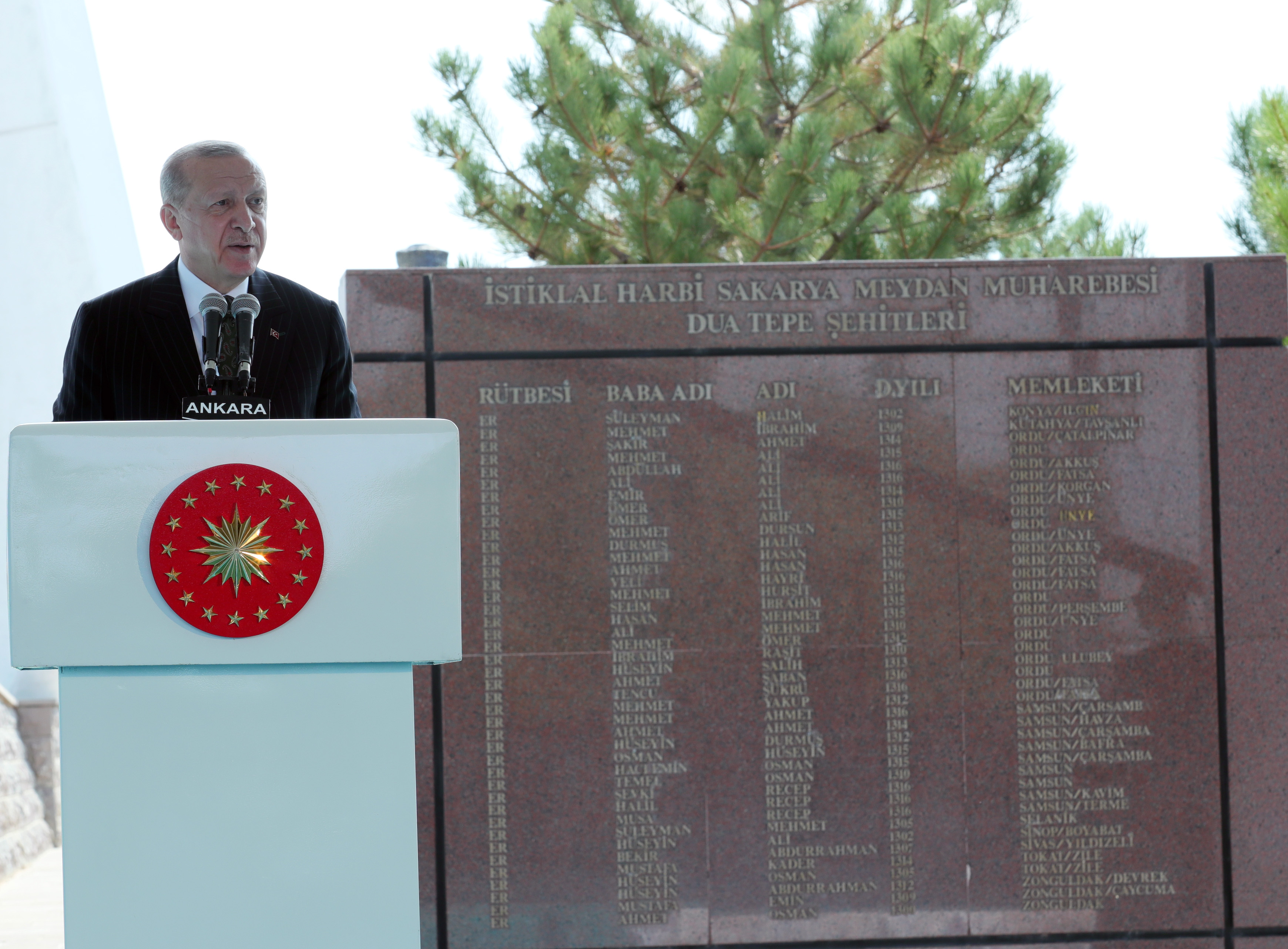 Cumhurbaşkanı Erdoğan, Polatlı ilçesindeki Duatepe Anıtı'nda düzenlenen Sakarya Zaferi'nin 100. Yılı Kutlama Programı'nda yaptığı konuşmada, Sakarya Zaferi'nin kazanıldığı 1921 yılının herhangi bir savaşın değil, Türklerin Anadolu'daki bin yıllık varlığının da dönüm noktalarından biri olduğunu belirtti.