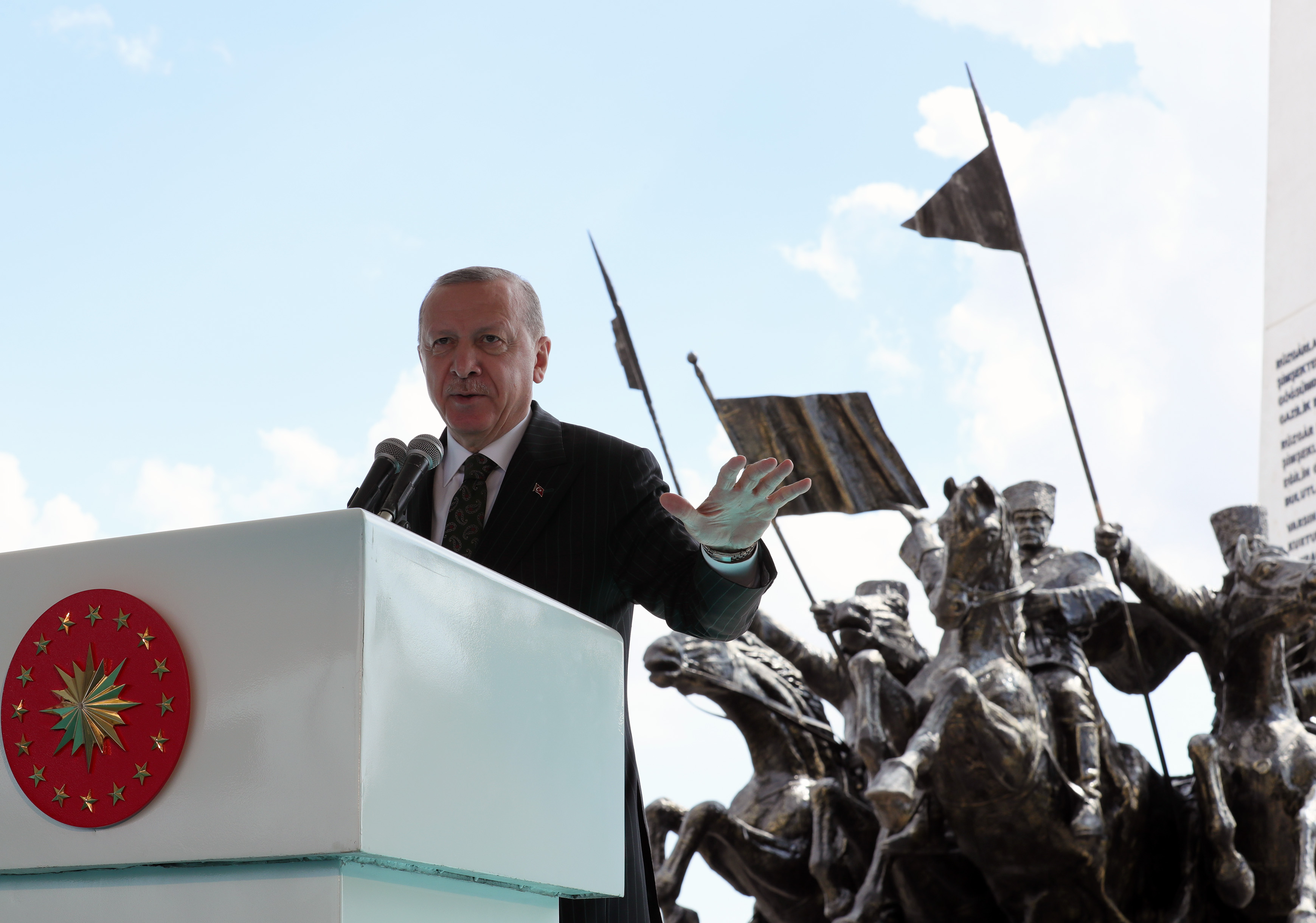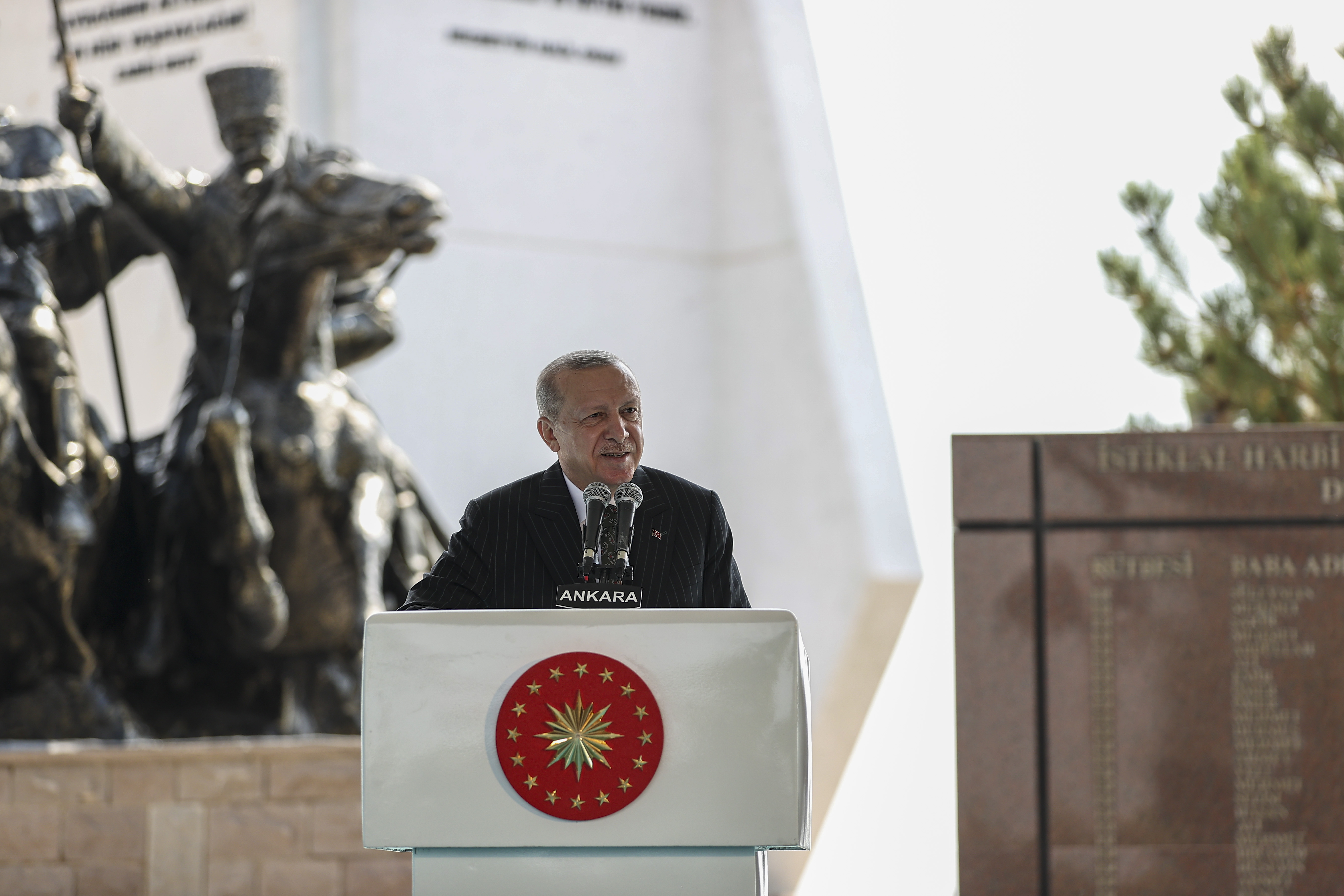 Cumhurbaşkanı Erdoğan, top seslerinin artık Ulus'tan duyulmaya başlandığı bir süreçte kahraman ordunun adeta düşmana "dur" diyerek istiklal ile sonuçlanacak Büyük Taarruz'un müjdesini bu bölgede verdiğini kaydetti.