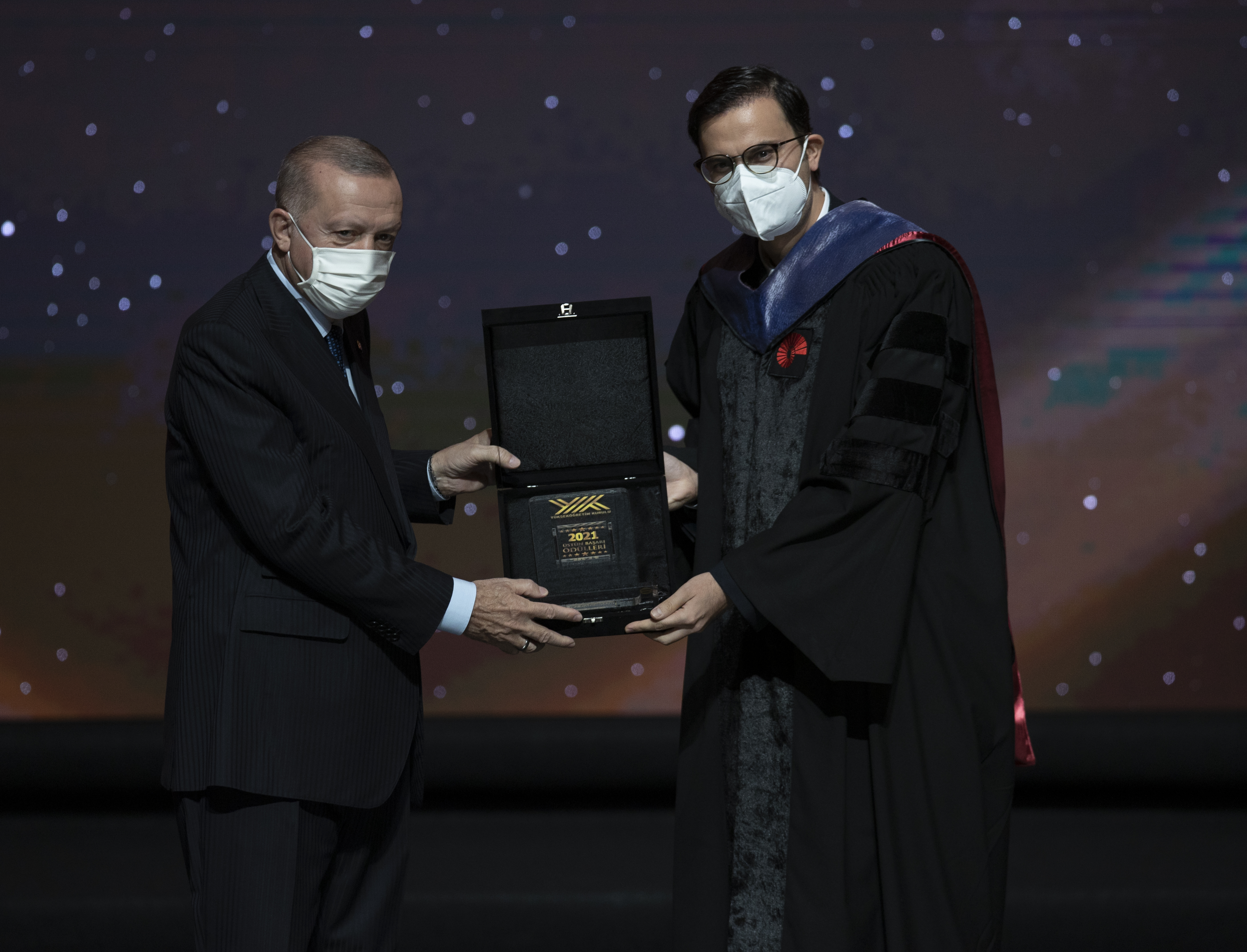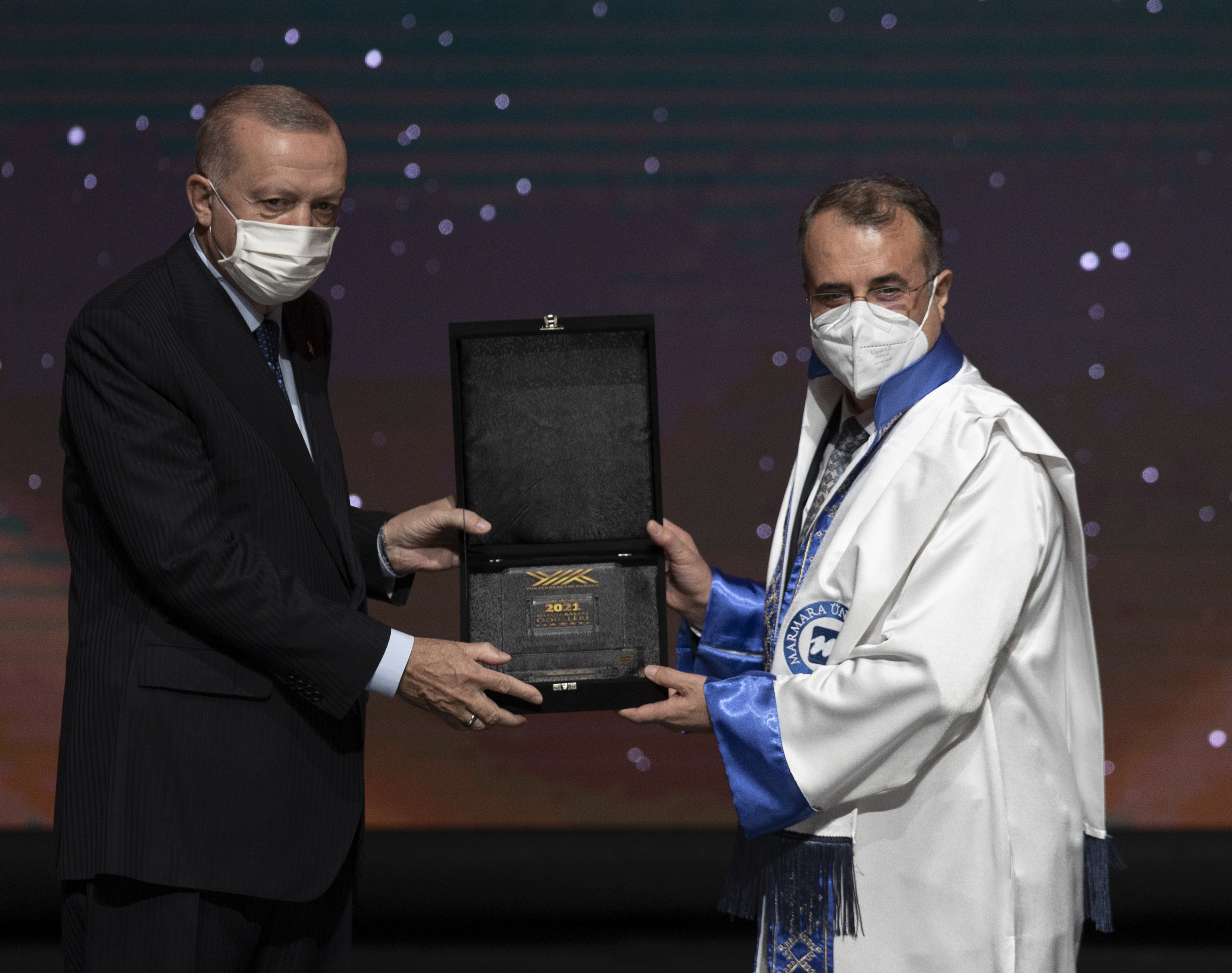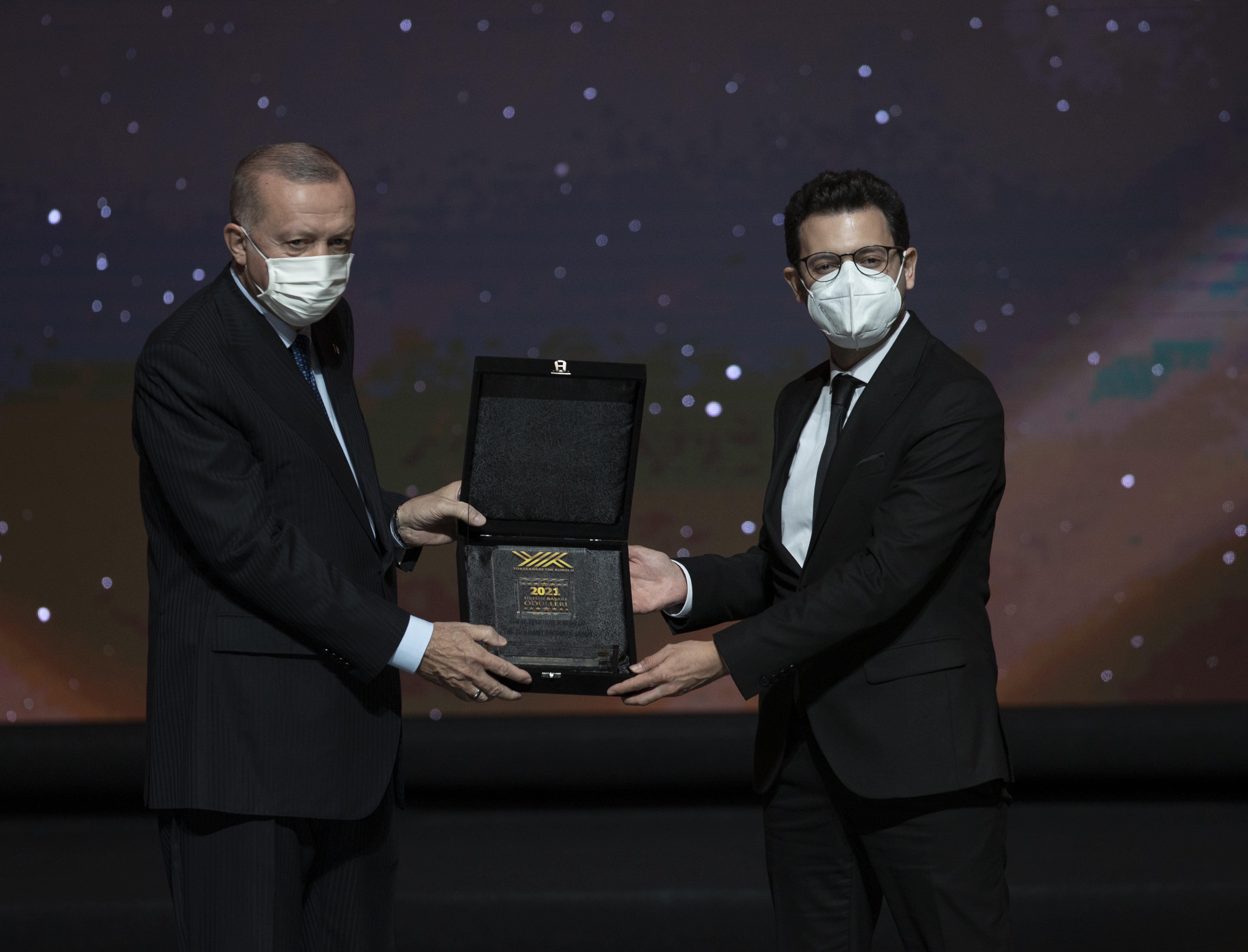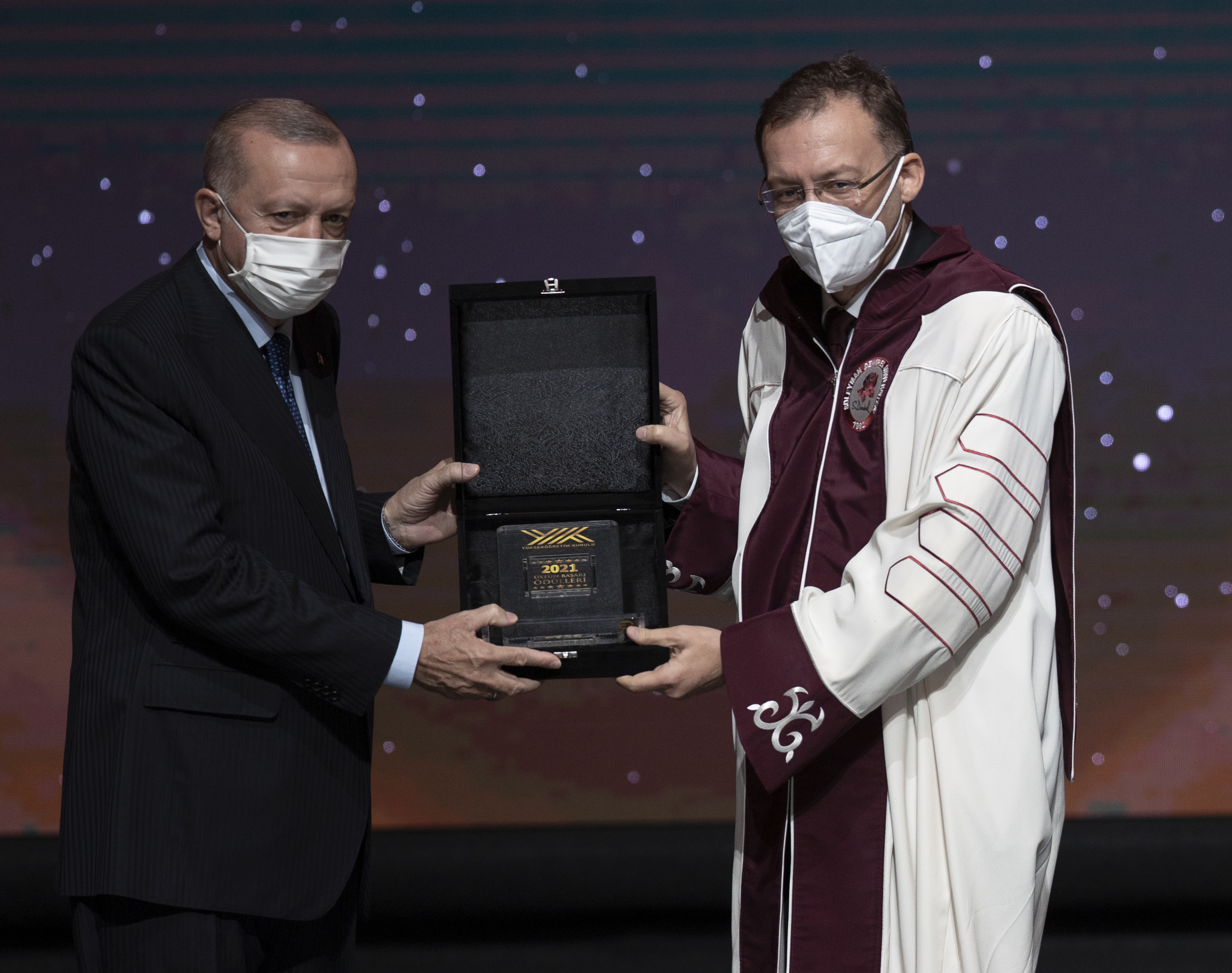 Cumhurbaşkanı Erdoğan, hitabının ardından YÖK Üstün Başarı Ödüllerini almaya hak kazanlara verdi.